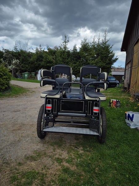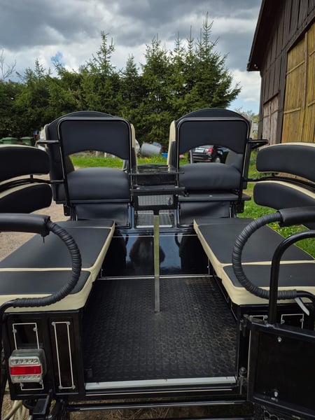 Zu verkaufen ist meine heißgeliebte Marathonkutsche, mein Zugpferd geht in Rente. Die Kutsche ist 6 Jahre alt, gut gepflegt, generalüberholt, zeigt Gebrauchsspuren. 4 Rad Luftbereifung, Scheibenbremsen vorne und hinten, Feststellbremse, Blinklichtanlage und Licht mit Batterie unter dem Beifahrersitz. Fahrersitz verstellbar, Rückbänke mit Stauraumfach ausgestattet, Sicherheitstüre hinten, Tisch mit Getränkehalterung ein- und ausmontierbar. Schere für ein Zugpferd 90cm breit, für Pferde und Ponys ab Stockmaß ca. 140cm. Deichsel um Zweispännig zu fahren ist auch dabei. Spurbreite der Kutsche 125cm. Gewicht ca 300Kg. Die Kutsche hat uns immer sehr viel Freude gemacht, sie fährt ohne Probleme. Kommt vorbei und schaut sie euch an, sie lässt sich auf einem Autotransporter oder einem großen Pferdeanhänger transportieren.