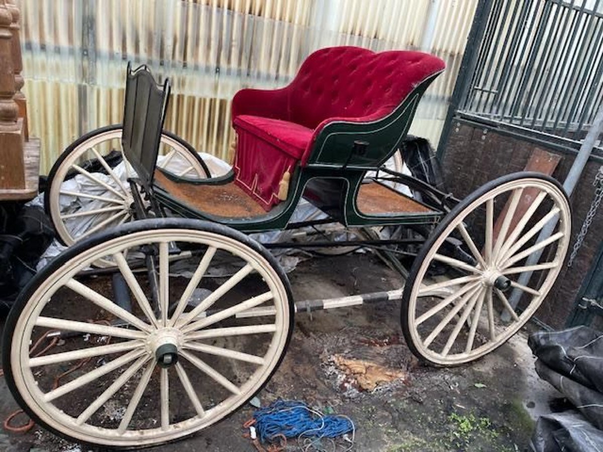 Hierbij verkoop ik een antiek rijtuig. Er zijn ook lantaarns aanwezig