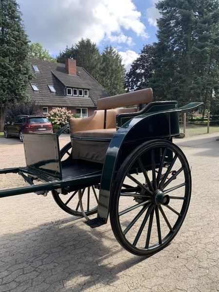 Historische Kutsche - Einspänner Verwendung: Gouvernanten-Tonneau für Fahrten mit Kindern (kleiner hist. Kindersitz ist dabei) Baujahr: ca. 1907 Zustand: sehr gut, sofort einsatzbereit Technische Details: Scheibenbremse, separater Einstieg hinten, Tür voll funktionsfähig Unterbringung: steht in Stein-auf-Stein Scheune, immer trocken Einspänner-Geschirr (Selett) kann ebenfalls erworben werden