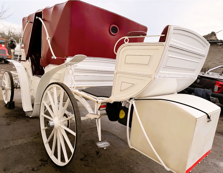 Beschreibung: Vis a Vis / Sonderanfertigung Platz für 11 Personen inkl. Fahrer mit extra Groomsitz für 3 Personen hinten. Sie verfügt über 4 Scheibenbremsen, kurbelbremse und Straßenbeleuchtung. Spurbreite 2 m, Länge ca. 6,50m, Räder Vollgummi. Vorne befindet sich eine zusätzliche Kiste für den Fahrer. Pferdeart: Großpferde Gespann Art: Bis zu 4-Spänner Zustand: gebraucht / sehr gut Fahrbereit: Ja, Kutsche ist voll fahrbereit und fährt sich ohne Probleme Farbe: Weiß mit Verdeck und Sitze in echt Leder / Bordeauxrot Im Koffer hinten ist genügend Stauraum für Decken, Futter oder einer Abdeckplane. Zusätzlicher Stauraum befindet sich zusätzlich unter den Sitzbänken. Preis ist VB! Bei Interesse freuen wir uns auf Ihre Mail. pferdetaxe.werneuchen@gmail.com Abholung bevorzugt! Eine Lieferung kann innerhalb eines gewissen Umkreises gegen Aufpreis durchgeführt werden, schreiben Sie uns hierfür bitte an, um mögliche Details zu klären.