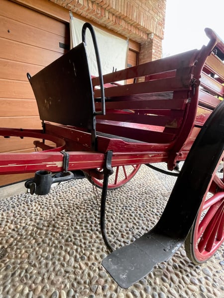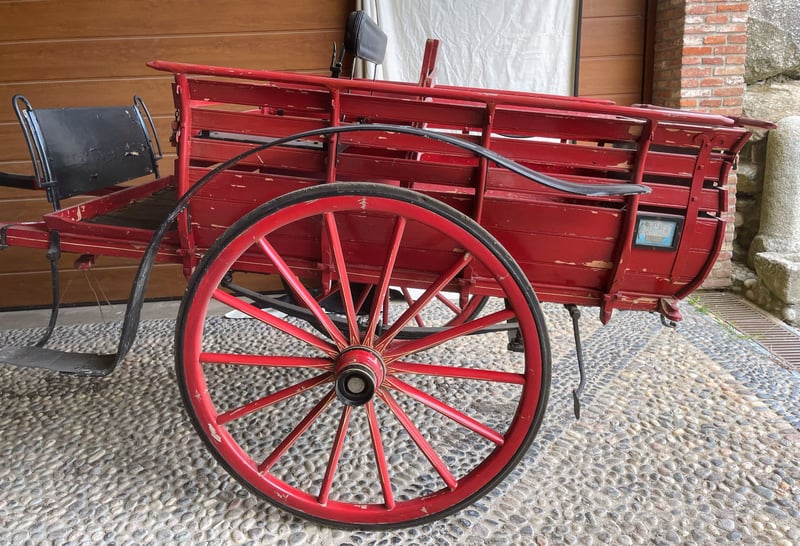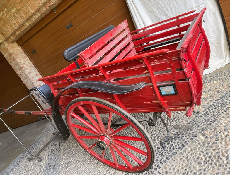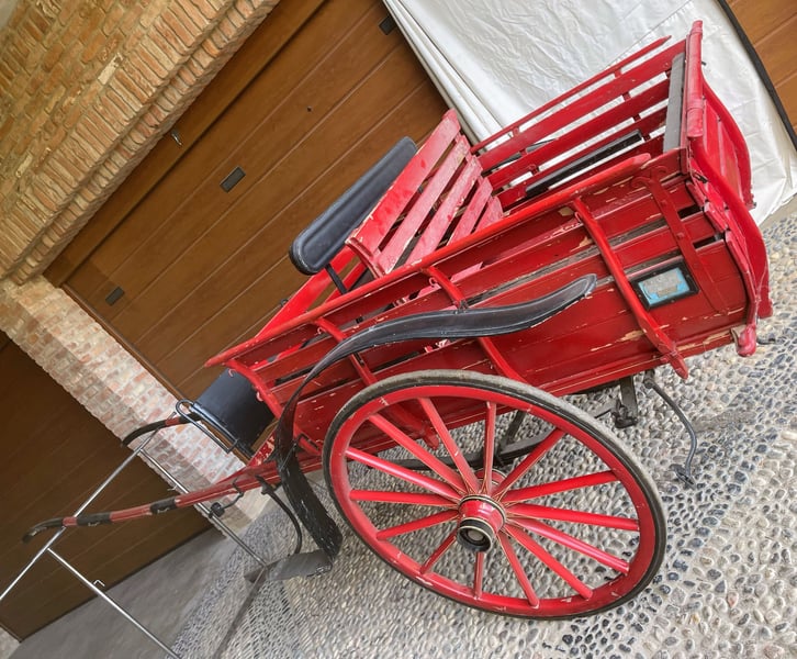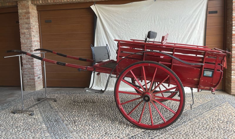 Propongo un eccezionale pezzo di storia della mobilità rurale italiana: un Biroccio (calesse a due ruote) fabbricato dalla prestigiosa ditta Enrico Orsaniga di Milano, come attestato dalla punzonatura originale sui mozzi delle ruote. L'oggetto si distingue per la sua incredibile completezza documentale, caratteristica rarissima sul mercato odierno. Questo esemplare è un reperto storico di rara completezza, ideale per musei del lavoro, collezionisti esigenti o come elemento di altissimo livello per l'arredo di tenute storiche. Caratteristiche di rilievo: Provenienza Certificata: Mozzi ruota marcati "Enrico Orsaniga - Milano". Documentazione d'Epoca: Presenti le targhe originali di circolazione del 1946, provincia di Pavia (PV), con sigillo in piombo dell'epoca ancora integro e indicazione della tassa di circolazione (L. 50). Stato di Conservazione: Struttura in legno massiccio estremamente solida, ruote a raggi perfettamente allineate, pianale integro e sedile con schienale. Dettagli Tecnici: Verniciatura rossa originale con filettature decorative sulle ruote ancora visibili. Un oggetto che testimonia l'immediato dopoguerra italiano, mantenendo intatto il fascino e la robustezza della manifattura milanese. La presenza del marchio Orsaniga Milano (fabbrica storica attiva tra fine '800 e metà '900) e delle targhe originali del 1946 aumenta il valore rispetto a un biroccio anonimo. La Targa: Il numero "10917" della provincia di Pavia (PV) del 1946 è un dettaglio fantastico. Indica che il veicolo era regolarmente censito per circolare su strada. Il Marchio Orsaniga: Essere un pezzo firmato da un costruttore milanese conosciuto garantisce una qualità costruttiva superiore (si vede dalla precisione dei mozzi e delle filettature). La meccanica: I mozzi sono lubrificati e non presentano crepe strutturali nel metallo, solo la normale patina del tempo. Dotazione: Sedile con schienale imbottito, stanghe originali e rastrelliere laterali. Pezzo di alto livello per collezionisti, musei della civiltà contadina o come elemento di arredo esclusivo per tenute storiche, agriturismi di lusso e location per eventi.
