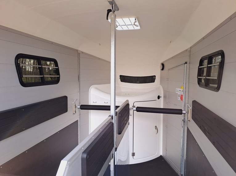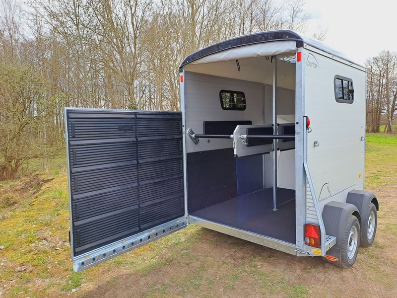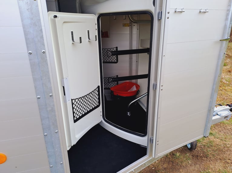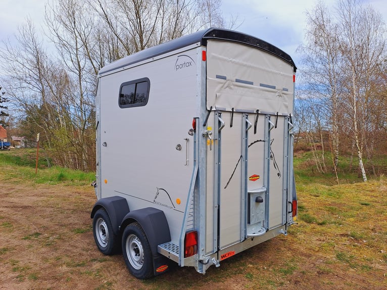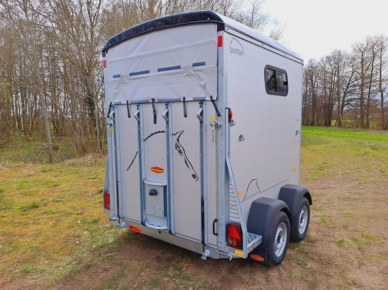 Wir verkaufen einen neuen Böckmann Portax SKA (22) in neuem Design - neues Design - mehr Platz - mehr Innenhöhe - zul. Gesamtgewicht: 2400 kg - Nutzlast: 1300 kg - Innenbreite: 175 cm - Innenlänge: 356 cm - Innenhöhe: 235 cm - WCF- Fahrwerk (Einzelradaufhängung) 100 km/h, - Hinterklappe Flügeltür kombination-seitlich schwenkbar, - Sattelkammer von außen und innen zugänglich - Sattelhalter dreh- und schwenkbar - Mittelpostentrennwand-vorn und hinten schwenkbar, - Trittschutz seitlich, - Seitenpolster, - Schiebefenster seitlich, - Dachfenster, - Panorama Fenster vorn, - 1 x große Einstiegstüren - Planenlift - Automatikstützrad - Preis inkl. MwSt weitere neue und gebrauchte Pferdeanhänger auf Lager! Fahrzeugbriefversand zur Anmeldung gegen 5 € Aufschlag im Vorfeld möglich! Lieferung nach Absprache, Finanzierung und Inzahlungnahme gerne möglich! Besichtigung/ Abholung in 16845 Großderschau nach Absprache unter 033875/909588 jederzeit möglich Öffnungszeiten: Montag - Freitag 8.00 - 17.00 Uhr