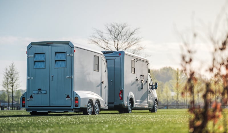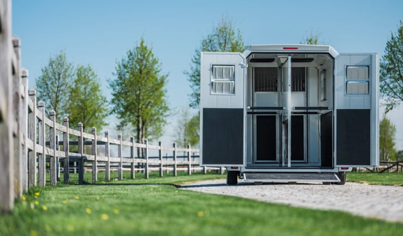 Marque : STX Poids: 2.5T Chevaux: 2 Dimensions: 2.4 x 5.2 x 3 m Espace chevaux Powder coating Ventilators Rampe arrière avec caoutchouc à haute adhérence Protection contre les coups de pied latéraux Lateral dismounting left and right Storage space Surveillance camera Équipement Bodywork entièrement en aluminum Interior lighting Options Exterior Stickers Peinture - Toutes les couleurs disponibles Brand: STX Weight: 2,5T Horses: 2 Dimension: 2.4 x 5.2 x 3 m Horse Area Rubber flooring Skylights Fans Rear ramp with high-grip rubber Side kick protection Side padding left and right Saddle cupboard + storage area Surveillance camera Equipment Full aluminum bodywork Interior lighting Options Outside stickering Painting - All colors available Brand: STX Weight: 2.5T Horses: 2 Dimensions: 2.4 x 5.2 x 3 m Horse section Rubber floor Skylights Fans Rear ramp with high-grip rubber Sidewall protection Covered walls left and right Saddle locker + storage Surveillance camera Accommodation Bodywork: all aluminum Interior lighting Options Exterior stickering Painting - all colors available