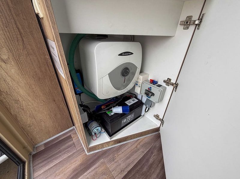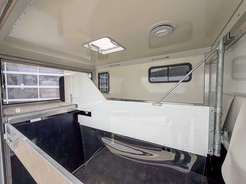 Équipement : 2 places de stationnement et compartiment de vie avec douche Nouveau van pour 2 chevaux avec compartiment de vie Poids total admissible : 3500 kg ; Soubassement en profilés d’aluminium Snaplock avec tapis en caoutchouc spécial collé ; Panneaux latéraux et de toit en poly pleine de 30 mm d’épaisseur, Design aérodynamique à l’avant, Rampe latérale en profilés d’aluminium avec caoutchouc antidérapant, ventilation par une trappe au-dessus ; Plancher en bois sur la rampe, Clôture réglable avec support pour le cou ; Porte latérale avec escalier rabattable facile à manipuler ; Grande cabine de séjour à l’avant, Deux fenêtres latérales à gauche et une à droite ; Une lucarne de toit ; Un abreuvoir fixe en dessous ; Box pour selle – sur demande avec armoire à selles mobile contre supplément ; Appartement entièrement équipé : Douche, De nombreux espaces de rangement, Micro-ondes, Réfrigérateur, Deux places assises avec table rabattable pouvant être transformée en lit superposé, Deux couchages, Évier, Fenêtres ouvrantes à l’avant. + + + Vidéo + + + Vidéo + + + Vidéo + + + https://youtu.be/totvbZVDHF4 Disponible immédiatement Livraison possible contre supplément Visite uniquement sur rendez-vous Demandes au 01606106131 -- 00491606106131 Nous avons toujours des remorques pour chevaux en stock, y compris équipements pour étalons, avec compartiment de vie ou sellerie.