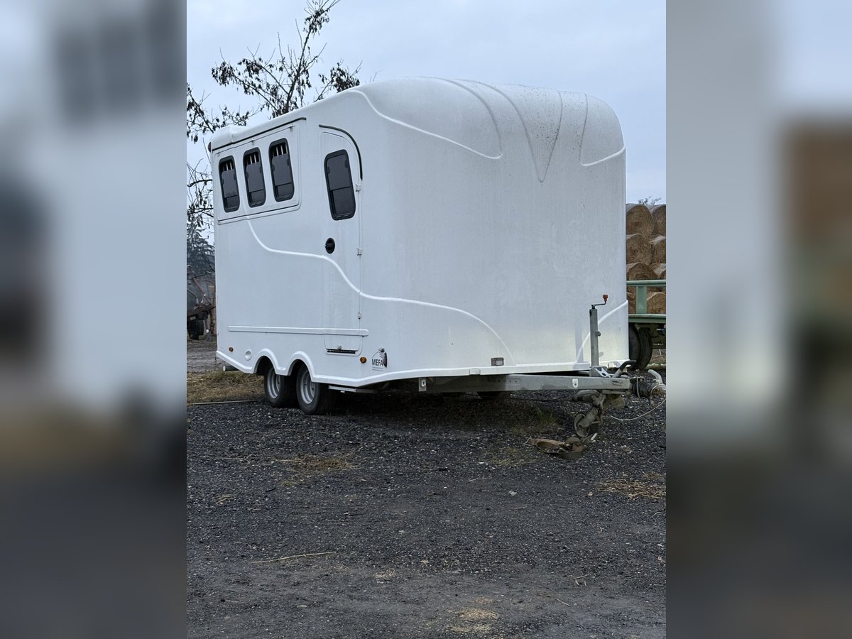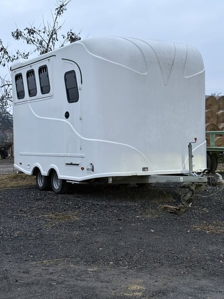 Verkaufe einen Steinsberger 3 Pferdeanhänger mit Sattelkammer und Bett Vor den Pferdeköpfen befindet sich ein großes Ausstellfenster mit drei integrierten Fallfenstern Baujahr 2015 3,5t gesamt Gewicht