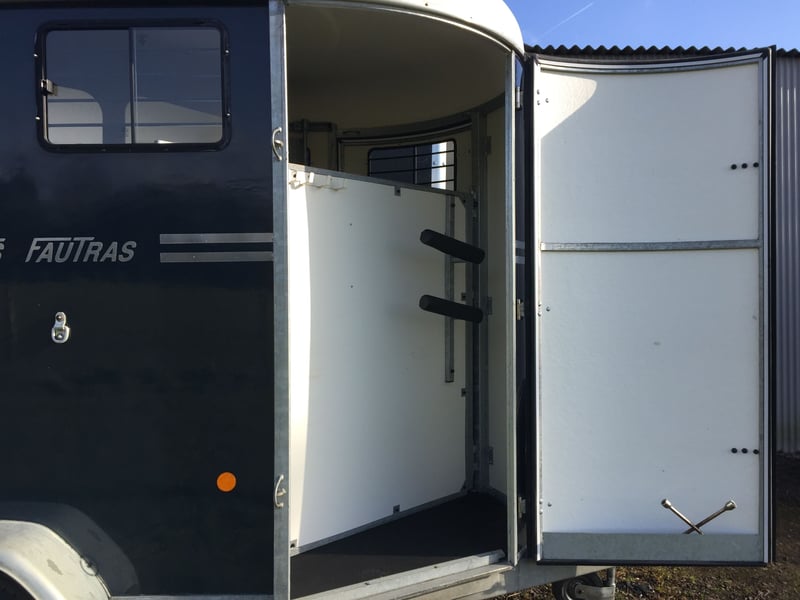 Van Fautras Oblic + 2 Bleu Marine; Année : 2010 Poids à vide : 780 kg; PTAC : 2400 kg; transport en diagonale et sortie à l’avant. Van en polyester, suspensions à roues indépendantes, plancher en polyéthylène imputrescible (garantieà vie); deux portes sans pont.