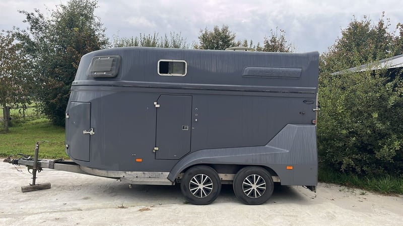 2 paards Böckmann hele grote trailer Met een vernieuwde 4cm hardhouten bodem en heel veel ruimte Nog super mooi in de lak Met nieuwe banden Vraagprijs 5000,-