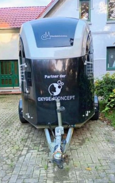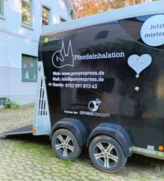 Kernfunktionen und Technik Sole-Vernebelung: Ein integrierter, hochfrequenter Ultraschallvernebler wandelt Sole (Salzlösung) in feinste Aerosole um. Diese tief in die Lunge eindringenden Partikel helfen, Schleim zu lösen, wirken abschwellend und entzündungshemmend. Sauerstoffkonzentrator: Das System arbeitet mit einem Sauerstoffkonzentrator, der den Sauerstoffgehalt der Umgebungsluft im Anhänger um bis zu 25 % erhöht. Der Sauerstoff wird direkt aus der Umgebungsluft gewonnen, was die Erzeugung kostengünstig macht. Ionisation: Ein integriertes Ionisationsmodul erzeugt negative Sauerstoffionen, die die Sauerstoffaufnahme im Blut beschleunigen und die Inhalationszeit optimieren. Automatische Steuerung: Die Technik verfügt über eine automatische Abschaltung (z.B. bei Leerstand in der Nebelkammer), um den Schwingquarz zu schützen. Merkmale des Anhängers Konstruktion: Stabiles, leichtes Gehäuse aus Aluminium oder robusten Materialien, oft ausgestattet mit einem Panoramafenster und -heckklappe für ein helles, freundliches Umfeld. Innenraum: Die Wände sind in der Regel leicht zu reinigen und desinfizieren, um hygienische Bedingungen zu gewährleisten. Sattelkammer: Häufig ist die Technik (Vernebler/Konzentrator) sicher in der Sattelkammer verbaut. Inhalationsmodus: Es wird meist ohne Maske in der geschlossenen Kammer (Rauminhalation) gearbeitet, was stressfreier für das Pferd ist. Vorteile und Anwendung Einsatzgebiete: Behandlung von chronischem Husten (COB/RAO), Allergien, Pilzinfektionen in der Lunge oder zur allgemeinen Stärkung. Effizienz: Die Sitzungsdauer ist durch die Kombination von Sole und ionisiertem Sauerstoff oft kürzer als bei herkömmlichen Maskeninhalatoren. Mobilität: Der Anhänger kann flexibel am Stall eingesetzt werden. Ein solcher Anhänger ist oft auf Basis der Careliner-Modellreihe aufgebaut. Der Anhänger ist soweit voll funktionsfähig ist ist auch der Anschluss für das Sauerstoffgerät vorhanden allerdings ist das Sauerstoffgerät Defekt weshalb dieser Anhänger günstiger angeboten wird. Die Sohle zum Inhalieren funktioniert allerdings einwandfrei. Das Sauerstoffgerät kann bei der Firma oxygen für ca 2500 € neu erworben werden der benötigte Vorbau für dieses Gerät ist im Anhänger schon vorhanden. Der Anhänger ist zudem mit Stützen ausgestattet die es erlauben ein Pferd auch ohne angekoppeltes Zugfahrzeug auf den Anhänger zu stellen. Ich trenne mich nur von diesem Anhänger da ich keine Zeit mehr habe für eine Vermietung des selbigen und ansonsten eine solekammer mit denselben Geräten besitze wenn unbedingt gewünscht kann ich mein Sauerstoffgerät dazugeben allerdings erhöht sich dann der Preis um 1500 €. Des Weiteren ist es ein Privatverkauf mehrwertsteuer nicht ausweisbar und daher unter Ausschluss jeglicher weiterer Gewehr. Der Anhänger wird abgemeldet übergeben.