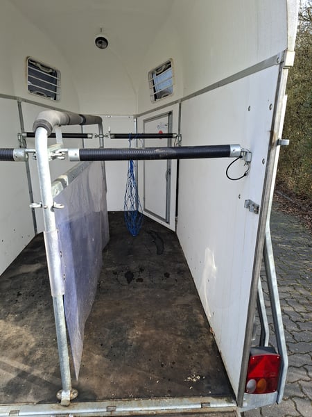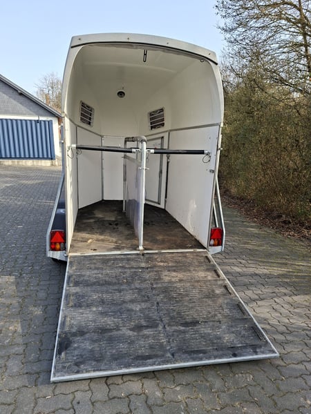 Beschreibung: Wir verkaufen einen gebrauchten Böckmann Pferdeanhänger Duo Esprit ohne Sattelkammer. -Reifen NEU -TÜV Neu -Erstzulassung 2018 -zul. Gesamtgewicht: 2400 kg -Leergewicht: 809 kg -Nutzlast: 1591 kg -Einstiegstür rechts, abschließbar -Gummi auf der Beladeklappe -Auftritt an Hinterklappe -Planenlift -Lichtanlage und Stecker 13-polig -Polywood-Boden -Innenbeleuchtung weiß -Stützrad