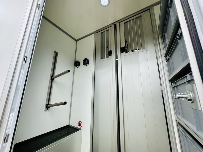 IMMEDIATELY AVAILABLE!! Roelofsen Yorse – Your Reliable 2-Horse Transporter Based on Renault Master Base price of the vehicle in white, including German TÜV inspection and delivery, €63,835 net (plus 19% VAT) The Roelofsen Yorse impresses with its simplicity and quality. Equipped with a powerful 165 HP diesel engine (Euro 6E) and a manual gearbox, it offers a comfortable driving experience. The permissible gross weight of 3.5 tons allows for toll-free use in many countries. State-of-the-art assistance and safety systems ensure a secure driving feeling—whether on short trips or long tournament journeys. Thoughtfully designed horse compartment – safe & comfortable • Space for up to two horses • Non-slip rubber flooring for maximum safety • Kick protection on the walls to safeguard the horses • Side ramp with hatch and limiter • Horse monitoring system with integrated reversing camera • Spacious tack room – perfectly organized • Shelving system with practical boxes • Bridle and saddle holders for optimal order • Ample space for additional equipment The entire body is made of durable GRP panels, ensuring high durability while keeping the weight low. This guarantees a stable, easy-to-manoeuvre vehicle with excellent driving characteristics. Optional equipment (not included in the base price): • Front bumper guard for side ramp • Rotatable partition at the partition wall • Doors between horse area and tack room • Removable feed troughs on the wall • Camera surveillance in the horse compartment including reversing camera • Articulated partition instead of standard partition • Removable breast bar with holder and panic release • Mounting mirror and step assist on the rear door • Tow bar including 13-pin electrical set and stainless steel rear step • "Horses" lettering on front and rear Total price of the vehicle including optional equipment: €69,540 net (plus 19% VAT) Leasing or financing from €899 net/month without deposit Further information & pictures available upon request! Subject to errors and prior sale.