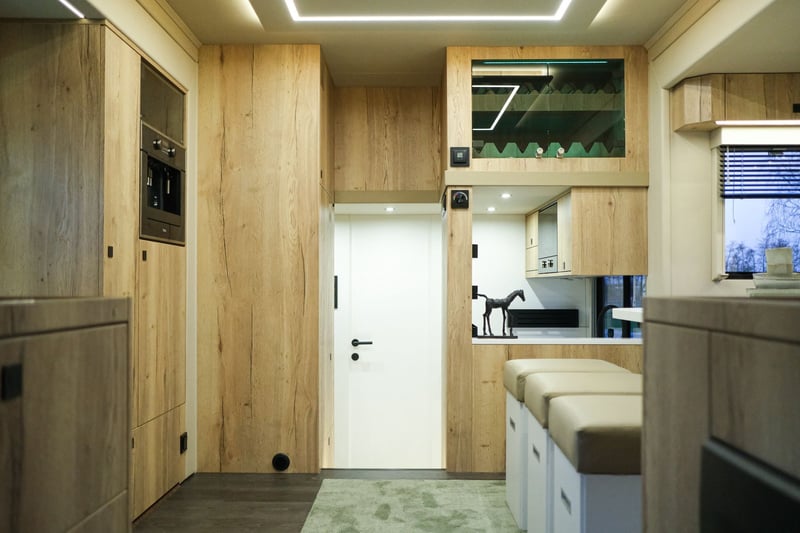 2022 - État neuf - 60 000 km - immatriculé mobilhome 100km/h Double pop-out Cusine américaine avec lave vaisselle Grand réfrégirateur + grand congélateur Lit tiroir enfant convertible rangement Cave à vin Chauffage au sol Smart TV Satellite Barre de son Airco froid/chaud Webasto Wifi Machine à café intégrée Aspirateur Dyson intégré Rangements +++ Réfrigirateur post de conduite Groupe éléctrogène Salle de bain avec douche - WC - sèche serviette 220V - lavabo - rangements - machine à laver/sèche linge Très grand lit avec pushup au dessus de la cuisine et SDB Lit double capucine 5 grands chevaux Coffre à couvertures en inox dans la partie chevaux Pont latéral et arrière avec éclairage Fenêtres de toit électriques Ventilateurs Capteur de température Lumière bleue et blanche Coffre latéral pour Segway Nouvelles batteries Victron Raccordement possible en eau permanente Éclairage extérieur latéral Rampe de phare avant Rocklinger + boule d'attelage Entièrement révisé, CT OK, immatriculation Belge Construction Krismar Exclusive Prix 369k HTVA Informations par téléphone : +33 777990876 +32 483444010
