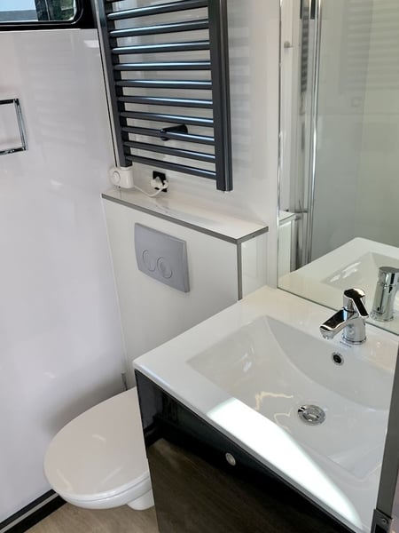 Véhicule en préparation, disponible prochainement ! Transporteur pour chevaux Mercedes-Benz Actros 1835 RJH Exclusive H5 avec slide-out et toit surélevé au-dessus de la salle de bain ! Mercedes-Benz Actros 1835 entièrement équipé, 354 ch, automatique, diesel, Euro 6d, PTAC de 18 tonnes, attelage avec une capacité de remorquage de 3 500 kg, régulateur de distance actif, système de navigation, suspension pneumatique complète (avant et arrière), sièges chauffants, caméras-miroirs, etc. Structure RJH EXCLUSIVE H5 avec MEGA-SLIDE-OUT - Grand lit de repos supérieur au-dessus du poste de conduite - Salle de bain séparée avec douche (fonction Rain-Dance possible) et toilettes en céramique, lavabo et armoire de bain - Espace de couchage séparé au-dessus de la salle de bain - Système de divertissement avec téléviseurs à écran plat, antenne satellite automatique (fonctionne également en 12 V, TV incluse) - Éclairage LED complet - Intérieur en cuir – murs et plafond partiellement recouverts de Skai en cuir - Jusqu’à 6 possibilités de couchage et compartiment séparé pour le personnel de service - Grande entrée dans la cabine – système d’étanchéité avec triple sécurité, totalement étanche - La structure et toute la technologie sont parfaitement adaptées à l’hiver jusqu’à -20°C ! (conçues et testées pour une utilisation professionnelle) Compartiment chevaux - Espace pour jusqu’à 5 chevaux, treuil, rampe arrière et latérale avec limiteur de rampe - Cloisons spéciales en acier inoxydable avec nouveau système, sans auge - Deux rampes mécaniques Easy-Lift (latérale et arrière) avec verrouillage intégré et limiteurs en aluminium - Caméra de surveillance dans la boxe chevaux et caméra de recul - Deux grandes lucarnes sur le toit, fenêtres coulissantes côté conducteur et passager, ainsi que deux ventilateurs électriques professionnels pour une circulation d’air agréable - Plusieurs compartiments isolés (imperméables et sans formation d’humidité) et sellerie extérieure pour selles, brides, ainsi que racks pour couvertures - La structure est également entièrement isolée et adaptée à l’hiver, garantissant une température plus fraîche pour les chevaux même lors des journées chaudes Pour plus d’informations et de photos, n’hésitez pas à nous contacter à tout moment ! Visitez-nous pour une visite et un conseil professionnel sur nos véhicules, sur rendez-vous ! Le prospectus RJH avec tous les véhicules est disponible en version imprimée ou numérique sur demande. Le groupe Roland Bauer vous propose en permanence une très grande sélection de 30 à 35 transports pour chevaux dans toutes les catégories et tailles.
