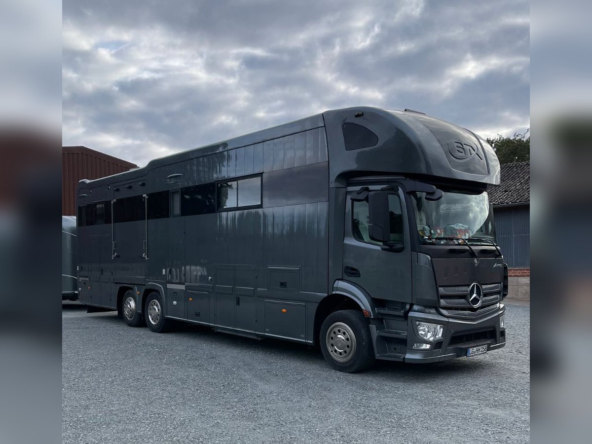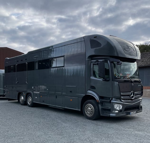 Mercedes-Benz Antos Motorhome – 26 t Pferdetransporter | 6 Pferde | Vollausstattung Zum Verkauf steht ein hochwertiger Mercedes-Benz Antos Pferdetransporter mit Motorhome-Aufbau, ausgelegt für den professionellen Einsatz im Turnier-, Sport- und Transportbereich. Auskunft unter +49 171 4332443 Fahrzeugdaten • Fahrzeugtyp: Mercedes-Benz Antos Motorhome / Pferdetransporter • Zulässiges Gesamtgewicht: 26.000 kg • Motor: Diesel, Euro VI • Leistung: 290 kW (ca. 394 PS) • Erstzulassung Fahrgestell: 02.07.2014 • Aufbau / Motorhome-Zulassung: 2015 • Kilometerstand: ca. 70.000–80.000 km • Zustand: sehr gepflegt, technisch einwandfrei ⸻ Pferdebereich • 6 vollwertige Pferdeplätze • Professioneller, robuster Ausbau • Großzügige Platzverhältnisse für Sportpferde • Sehr gute Belüftung und Klimatisierung • Separater Sattel- und Stauraum • Durchdachte, pferdegerechte Raumaufteilung ⸻ Wohn- & Technikbereich (Vollausstattung) • Hochwertiger Motorhome-Ausbau • Bad mit Dusche und WC • Küche mit Stauraum • Schlafmöglichkeiten • Standheizung • Klimaanlage • Generator • Hochwertige Materialien und solide Verarbeitung • Ideal für mehrtägige Turniere und längere Transporte ⸻ Gesamtzustand Das Fahrzeug befindet sich in einem außergewöhnlich gepflegten Gesamtzustand. Die geringe Laufleistung ist in diesem Segment deutlich unterdurchschnittlich und wirkt sich positiv auf den Werterhalt aus. Kein intensiver Fernverkehrsbetrieb, regelmäßige Wartung. ⸻ Marktposition • Professioneller 26-t-Pferdetransporter • 6 Pferde + Vollausstattung → seltene Kombination • Vergleichbare Neufahrzeuge liegen deutlich über 350.000 € Dieses Fahrzeug richtet sich an anspruchsvolle Nutzer, die Wert auf Zuverlässigkeit, Platz, Komfort und professionelle Ausstattung legen. ⸻ Preis VB – marktgerecht positioniert ⸻ Besichtigung Besichtigung nach Absprache möglich. Weitere technische Details und Unterlagen auf Anfrage.