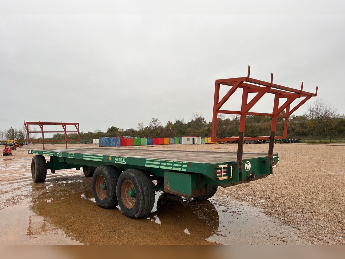 Bruneau 11.40 B Etat occasion - Année 2007 Long. de plancher: 10m Long. chargement avec support échelle: 10,73m Long. chargement en haut des échelons:11,35m Long hors-tout: 12,83m - Larg de Plancher : 2,50m Hauteur de Plancher: 1,21m PV:4,63T - CU:14,97T - PTAC: 18,98T Empattement: 6,22m Essieu : Oscillant avant 80 mm Boggie arrière 80 mm - 8 axes Dimensions freins: Avant non freiné Arrières 350 x 60 mm 6 Roues montées en 315/60 R22,5