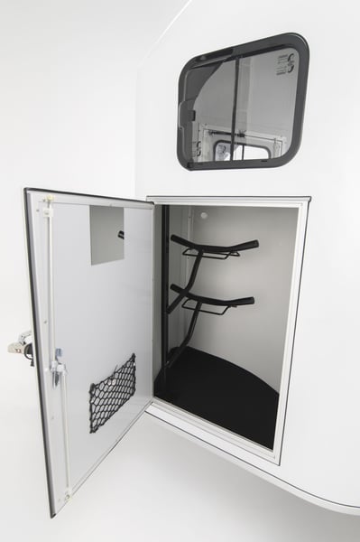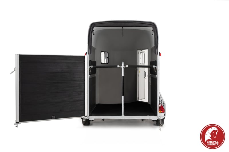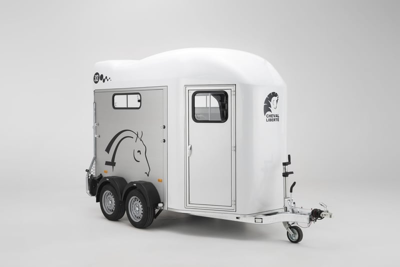 In stock colors: Blue White The Cheval Liberté Gold 3 horse trailer is a highly popular choice among horse owners and professionals due to its practicality, safety features, and elegant design. Engineered with the comfort and protection of your horses in mind, it provides advanced technology, user-friendly handling, and long-lasting durability. Key Features of the Gold 3 Trailer • Capacity: Suitable for transporting two horses • Pullman 2 Suspension System: Innovative Pullman 2 suspension ensures a smooth and stable ride, reducing vibrations and improving overall transport comfort. • High-Quality Materials: Anodized aluminum side panels and aluminum flooring (with a 5-year floor warranty) for superior durability and protection. • Ramp/Door Combination: The multifunctional rear system can be used as a ramp or door, allowing easy loading and unloading. • Ventilation: Multiple sliding windows ensure excellent airflow for the horses’ comfort. • Non-Slip Rubber Flooring: The floor is covered with sealed, non-slip rubber for increased safety. • Spacious Tack Room: Integrated tack compartment for secure and convenient storage. Technical Specifications & Standard Equipment Patented Pullman 2 chassis Reinforced fiberglass roof & front section Aluminum sides Large side access door Aluminum floor + 8 mm rubber mat Rear ramp also opens as doors + automatic roller Adjustable front and rear breast/breech bars Automatic jockey wheel with large handle Front sliding windows (tempered glass) with vents Side sliding windows 700 × 200 mm Padded side walls Kick-protected side panels Interior light Tack room Wheels 185/65R14 with steel rims Maximum total weight available up to 2600 kg + head partition + extra rubber mat 📞 Contact & Availability Trailers are available from stock or by order. For more information, please contact us: 📱 00386 40 984 220 📧 info@vprege-repnik.si Photos are symbolic 7975,00 € + VAT