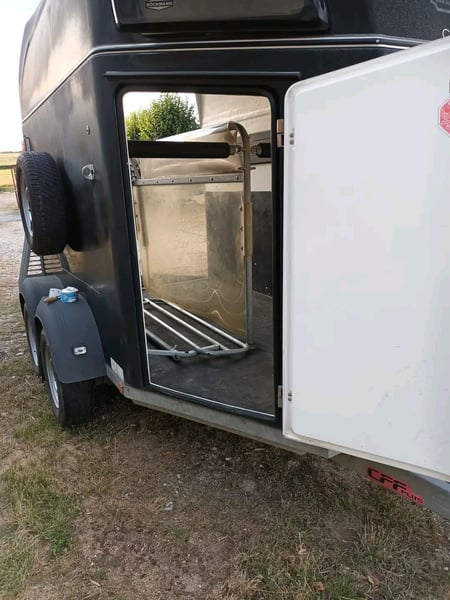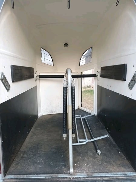 Tare weight 670 kilograms GVW: 2000 Kilograms Trailer Bockmann Duo R pack luxe. Capacity: 2 large Horses. Horses travel: Front head Aluminum floor. Polyster roof. Spindle socket 13 poles. Good condition. Price to be revised slightly.