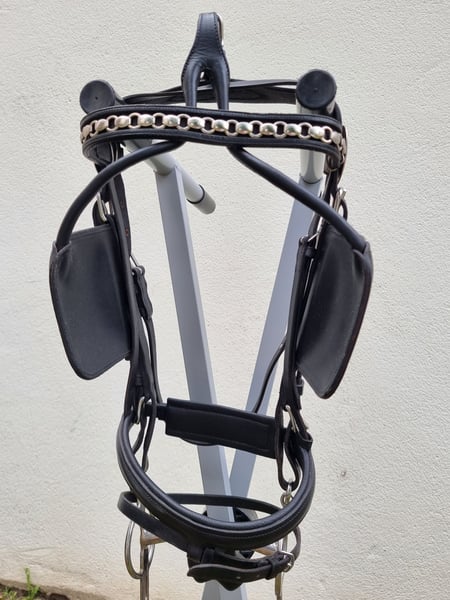 Marathonhauptgestell mit Stirnkette und Nasenhalfter Liverpool Kandare mit 2 Schlitzen 14,5 cm incl. Kinnkette Zustand neuwertig Abholung in Hilden möglich Versand gegen Versandgebühr Zahlung per Paypal Da Privatverkauf keine Garantie, Gewährleistung oder Rücknahme