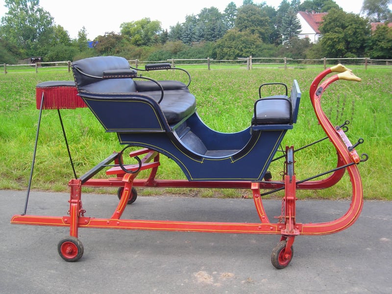 Schlitten für 4 Personen plus Kutscher hinten. Der Schlitten ist so gebaut das man eine Hansmeier Deichsel oder Schere daran befestigen kann. Da die Originaldeichsel zu niedrig war.