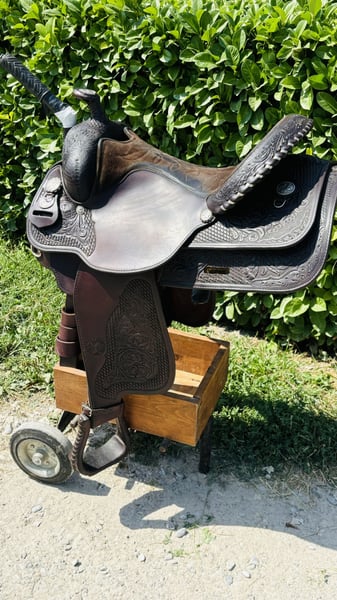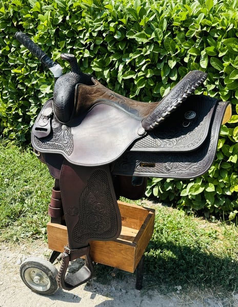 Sella americana CIRCLE Y, misura seggio 16, TENUTA IN MANIERA MANIACALE. Possibilità di consegna a mano zona Lombardia e Emilia Romagna Valuto spedizioni