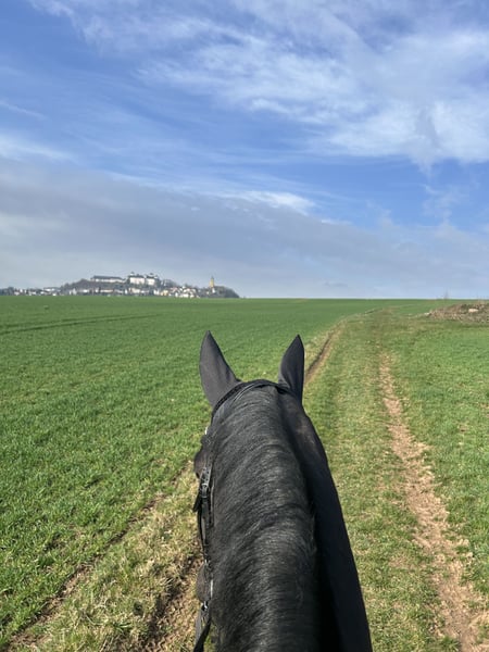 Berittplätze frei – Pferdewirtin | Dressurbetonte Ausbildung | Raum Chemnitz | Erzgebirge Auf unserem kleinen, familiären Hof bieten wir Berittplätze mit individueller und pferdegerechter Ausbildung. Ich bin Geraldine (29), gelernte Pferdewirtin in den Fachrichtungen Haltung & Service (Hauptgestüt Graditz) sowie Klassische Reitausbildung (Brandenburgisches Haupt- und Landgestüt Neustadt (Dosse)). Nach meiner Ausbildung war ich 10 Jahre am Brandenburgischen Haupt- und Landgestüt Neustadt (Dosse) tätig. Dort sammelte ich umfangreiche praktische Erfahrung in der Aufzucht und Vorbereitung von Hengsten auf Körungen sowie in der Vorbereitung von Stuten für Leistungsprüfungen und Staatsprämienschauen. Mein Schwerpunkt liegt in der Dressur, gleichzeitig lege ich großen Wert auf eine abwechslungsreiche und pferdegerechte Ausbildung. Neben der Dressurarbeit gehören auch Geländeritte, Longenarbeit, Stangenarbeit und kleinere gymnastizierende Sprünge dazu. Jedes Pferd wird bei mir individuell gefördert und mit Geduld, Klarheit und einer vertrauensvollen Basis gearbeitet – egal ob Freizeit- oder Sportpferd. Auch Ponys ab 1,40 m sind herzlich willkommen. Unser Hof bietet:• Reitplatz (25 × 45 m)• Große Boxen mit Fressgittern – 24/7 Heu• Großzügige Koppeln und Ausläufe• Schönes Ausreitgelände 📍 Nähe Chemnitz ab 800 € monatlich inkl. Beritt & Vollpension 📩 Begrenzte Berittplätze verfügbar. Gerne beantworte ich weitere Fragen und freue mich darauf, Sie und Ihr Pferd kennenzulernen!