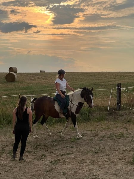 Ich biete mobilen Reitunterricht und Bodenarbeit/ Freiarbeitstraining an. Ich komme zu euch und ihr könnt aber auch, wenn ihr kein eigenes Pferd habt mit meinem Pferd in den Unterricht gehen. Mein Ziel ist es vor allem, dich und dein Pferd auf eurem gemeinsamen Weg zu begleiten - mit Geduld, Verständnis und einem Trainingskonzept, das auf Harmonie, Leichtigkeit und gegenseitigem Vertrauen basiert. Ich hole dich gerne genau dort ab, wo du und dein Pferd gerade steht. Ich begleite euch in jeder Phase und wir sprechen einfach darüber was das Ziel für dich und dein Pferd ist und wo du Hilfe benötigst. Ich freue mich auf ein Kennenlernen mit dir und deinem Pferd und vielleicht finden wir eine gemeinsame Lösung zusammen. Ich fahre in den Umkreis maximal 50km von Eberswalde aus mit einer Km-Pauschale von 0,70€. Sofern du schon reiten kannst und einfach nur mal wieder ausreiten möchtest, melde dich auch gerne und wir können gemeinsam ausreiten gehen bei mir. Anfragen gerne über Pn oder auch gerne direkt über WhatsApp: 01726294327