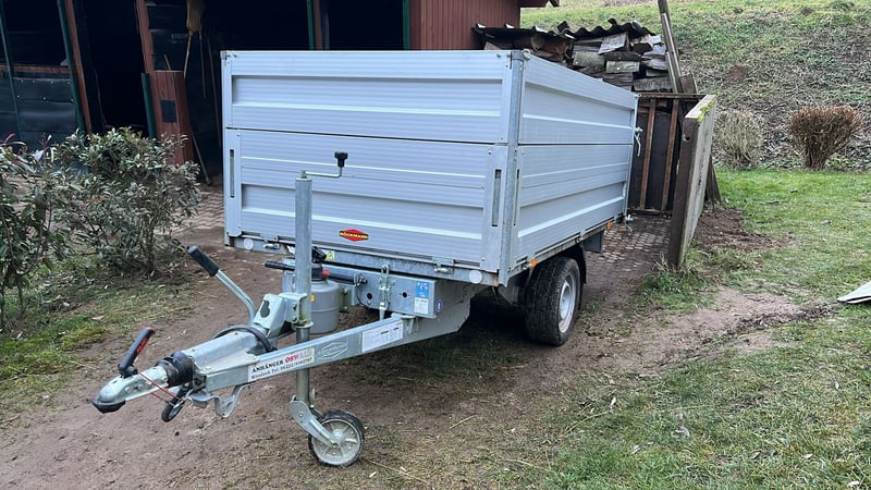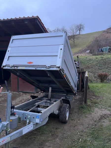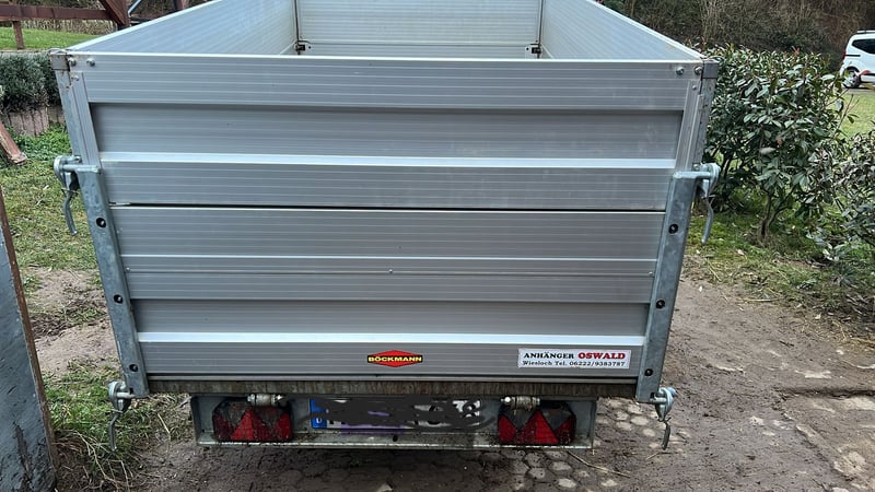 Böckmann Rückwärtskipper RK AL 2514/15 Ladeflächenmaß 2560 x 1400 x 300 mm Bordwanderhöhung auf 500 mm Zulässiges Gesamtgewicht 1.500 kg 4 Zurrbügel im Seitenwänden 13 poliger Stecker Automatik-Stützrad Kastenaufsatz 350 mm Aluminium Hydraulischer Teleskopzylinder mit Handpumpe zum Hochpumpen und Absenken der Ladefläche Erstzulassung November 2021 Kaum km gefahren Sehr guter Zustand, TÜV neu (Jan. 2026) Neupreis 4.400 Euro Für 3.500 Euro zu verkaufen