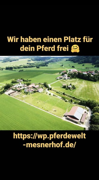 Wir haben Plätze frei für 3 Ponys oder Kleinpferde. Wir bieten einen familiären Freizeitstall mit kleinem Reitplatz und offener Reithalle. Ebenso haben wir auf Wunsch Unterrichtet und Kurse im regelmäßigen Angebot. Dein Pferd füttern wir täglich morgens und abends, und wir misten von Montag bis Donnerstag. Freitags bis Sonntags mistest du dein Pferd selbst. Wenn dich unser Angebot anspricht, melde dich, wir freuen uns! www.pferdewelt-Mesnerhof.de