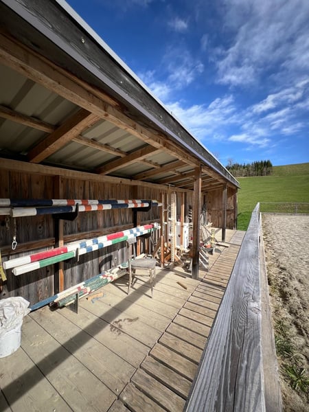 Wir haben ab März, eventuell auch früher, einen Einstellplatz frei! Wir bieten: - eine große Box mit Paddock - wunderschöne, ruhige Lage - gute Erreichbarkeit dank Nähe zur Autobahn - ganzjährig Koppelgang bei Schönwetter - 3 mal täglich Heu aus eigener Produktion, abgestimmt auf die Bedürfnisse - täglich ausmisten - auf die Weide bringen bzw. wieder holen - eine kleine, gemischte Herde mit max. fünf Pferden - Reiterstüberl mit eigenem Schrank und Warmwasser - WC im Stall - Indoor Waschplatz - Reitplatz mit Flutlicht (21mx42m) mit viel Equipment - Freie Hufschmied-, Tierarzt- und Trainerwahl - Kleine, feine Stallgemeinschaft - Hunde- und Kinderfreundlich Nach Vereinbarung kann jederzeit besichtigt werden. Wir freuen uns auf euch!