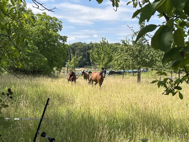Offenstall Offenstall Offenstallplatz Aufzuchtplatz Paddock Hallo! Suche nettes Einstellpferd & Besitzer für gepflegten Offenstall in 53347 Alfter ab ca. Mitte Oktober. Was wir bieten: -über 2000qm Winterpaddock unter Bäumen (kaum Matsch) -befestigter & beleuchteter großer Offenstall -beleuchtete & überdachte große neue Heuraufe drumherum befestigt, sodass die Pferde trocken stehen -befestigter & beleuchteter Putz- & Waschplatz mit Dusche -überdachter & trockener Stellplatz für den Sattelschrank -beleuchteter „Bewegungsplatz“ (Reitplatz ab 2026) & Roundpen (16m, Allwetterfest) -24/7 im Winter Heu von guter Qualität -24/7 im Sommer gepflegte Weiden mit Baumbestand -2x tägliches Misten im Winter -im Sommer Mithilfe Nachpflege der Weiden -Mineral- & Salzlecksteine zur freien Verfügung -wunderschönes Ausreitgebiet direkt vor der Tür (Wald & Felder) -Strom & fließend Wasser -sauberes Parken -Hallennutzung & neuer Reitplatz in 15 Min Hängerfahrt gegen geringe Gebühr -Hallennutzung fußläufig (7 Min) gegen Gebühr -Reitvereingelände in 30 Reitminuten gegen Mitgliedschaft Herde besteht aus zwei Stuten und Wallach. Serviceleistungen: Privater Offenstall daher Aufteilung der Versorgung. Bis April 2026 in „Selbstversorgung“ (Heu-Dienste teilen wir uns) auf eigenem Paddock an befestiger & überdachter Heuraufe, misten musst Du selber (täglich!). Preis in Selbstversorgung 150,-€ mtl. zzgl. Heu & Wasser (100,-€ mtl.). Offenstall befindet sich in Alfter (Ort) 5 Autominuten vom Ortskern. Was ihr mitbringt/ notwendige Voraussetzungen: -Wallach oder Stute bis max. 15 Jahre -gerne auch Jungstute 1-2jährig (für meine kleine) -min. 1,45m bis max. 1,70m Stockmaß -Offenstallgewöhnt (nehmen keine Boxenpferde!) -Barhufer oder max. vorne Beschlagen -herdenverträglich -Entwurmung nach ZSE -Du als Besitzer kommst aus der Nähe und hast max. 20 Min Anfahrtsweg (wegen Selbstversorgung bzw. Dienstaufteilung) Bitte nicht anfragen, wenn keines der oben genannten Voraussetzungen gegeben sind und ihr nur was kurzfristig sucht! Wir freuen uns über Vorstellung eurerseits, bitte mit Berücksichtigung der notwendigen Voraussetzungen!! Bei Fragen gerne einfach melden! :)