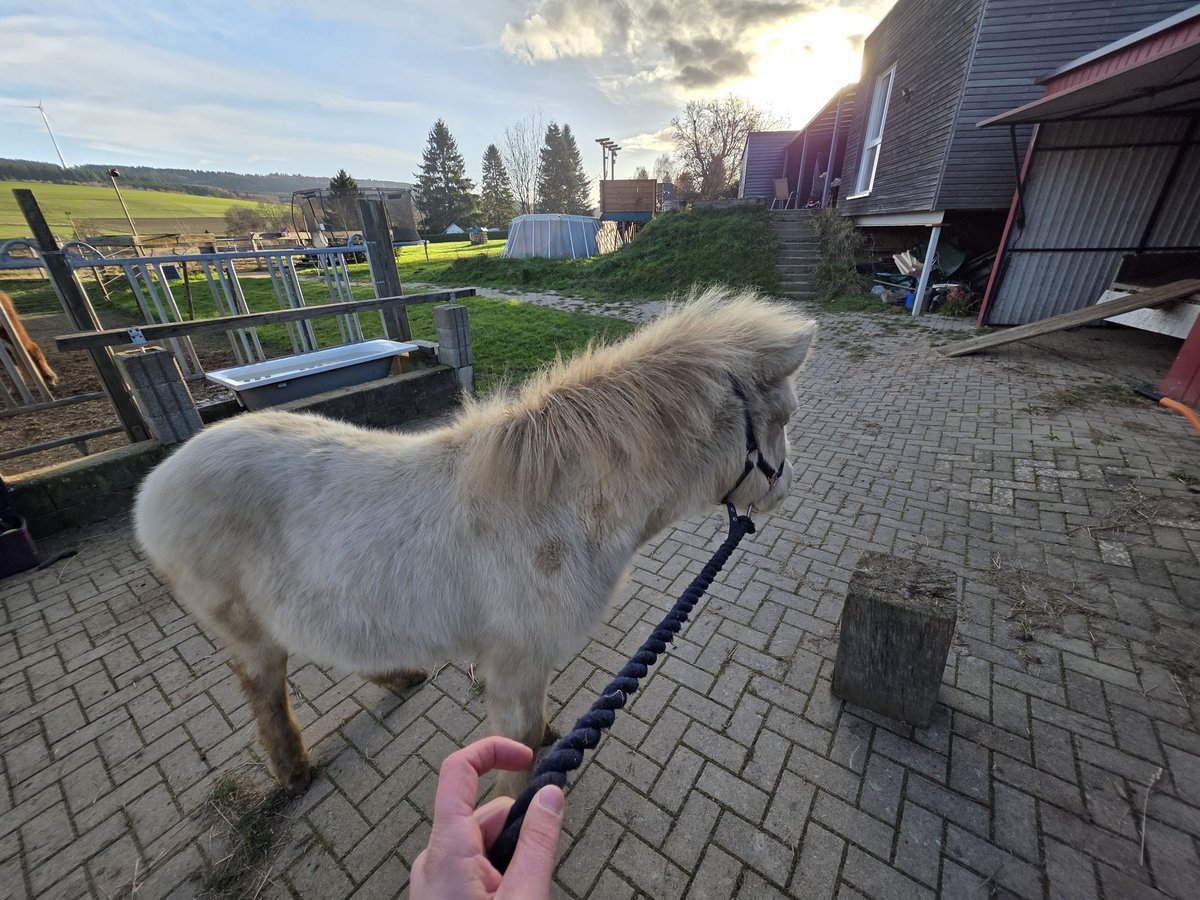 Hallo, da ich nur ungerne mein Isälnder Hengst Fohlen verrkaufen möchte versuche ich einen Spielfreund zufinden. Er ist am 08.06.26 geboren, es ist wichtige zu wissen dass die Junghengste im Früher 2026 kastriert werden müssen da nur stuten am stall stehen. Wir haben einen schönen, gepflegten, matschfreien Offenstall, eine bunte Altersgruppe von 0 - 15 Jahren, nur Isländer. Sie bekommen zweimal täglich Heulage und wir bekommen es mit, wenn sie krank sind. Der Hufschmied kommt auf Wunsch alle 8 Wochen und sie werden regelmäßig entwurmt sowie geimpft. Einen Umzug kommt für mich nicht in frage da ich leider keine gute Erfahrungen gamcht habe und aus Organatorischen Gründe wäre es auch schwierig für mich. Sein Halbburder wurde leider verkauft und nur 2 Stutfohlen aus dem Selben Jahrgang aber die Spielen nicht so wie Jungs eben halt. Vielleicht kann ich es so vermeinden dass er in einem anderen Zuhause groß wird. Der Offenstall befindet sich in 54314 Zerf. Für Rückfragen stehe ich gerne zuverfügung. Liebe Grüße Bianca