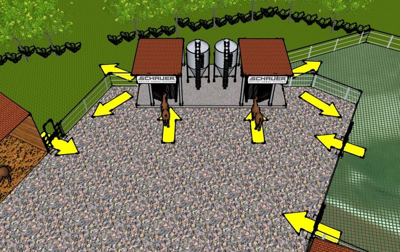 Nuovo box attivo in costruzione, previsto per maggio 2026, e stalla attuale, con 2 maneggi.