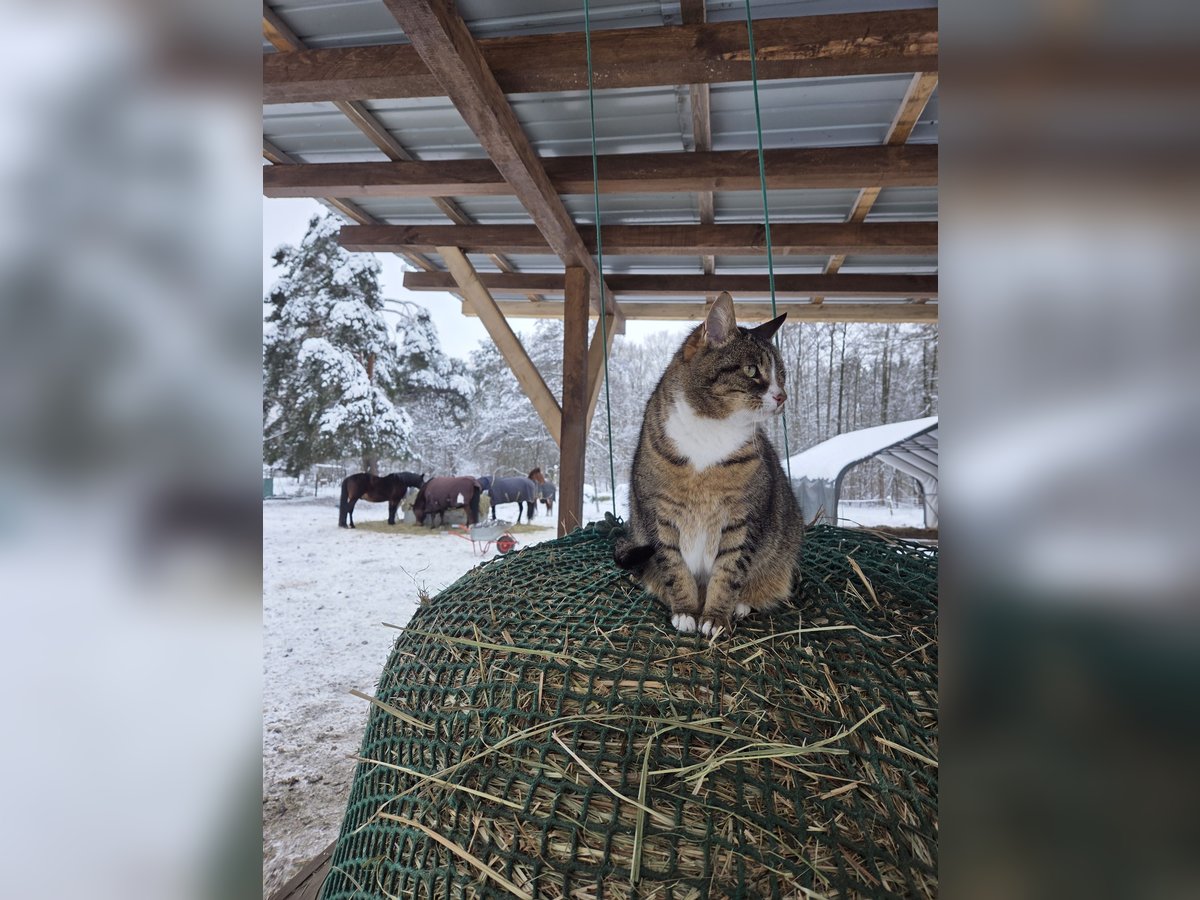 Stall befindet sich direkt im Wald in Zühlsdorf - zu erreichen mit der Regio oder dem Bus 806. Nette Stalltruppe, kein Gezicke! Wir bieten Ihnen einen artgerechten und komfortablen Einstellplatz in Selbstversorgung für Ihr Pferd in einer natürlichen und gepflegten Umgebung. Die Herde besteht aus 2 Stuten und 4 Wallachen im Alter von 6 bis 21 Jahren ist alles vertreten. Pferde werden bei uns in einer harmonischen, derzeit sechsköpfigen Herde auf einer großzügigen Koppel/Paddocktrail von 1 Hektar Größe gehalten. Ein Schubberstamm, Salzlecksteinhecke, einen Trail mit vielen knabberästen, Bäume sowie eine Totholzhecke sorgen für keine Langeweile auf der Koppel. Die Koppel wird stets sehr sauber gehalten, und Ihre Pferde haben Zugang zu 24 Stunden frischem Heu (24/7) und Wasser. Zudem stellen wir qualitativ hochwertiges Heu zur Verfügung, das über engmaschige Heunetze an mindestens zwei Futterplätzen mit befestigtem Boden verabreicht wird. Für den Sommer planen wir ein Roundpen, das zusätzlich Platz für Training und Bewegung bietet. Unsere Weide mit 2 Hektar, steht Ihren Pferden von April/Mai bis Ende Oktober (24/7) zur Verfügung, und zwei Unterstände sorgen dafür, dass Ihre Tiere jederzeit Schutz vor Witterung finden. Ein großer, befestigter und überdachter Putzplatz mit Licht steht Ihnen zur Verfügung, damit Sie Ihr Pferd bequem pflegen können. Trensen- und Sattelhalter sowie Anbinder stehen zur Verfügung. Neben der Futterkammer, die von unseren 3 süßen Hofkatzen (wir sind Mäusefei) bewacht wird, bieten wir eine Sattelkammer für Ihre Ausrüstung sowie einen beheizbaren Bauwagen und eine Öko-Toilette für Ihre zusätzlichen Bedürfnisse. Pro Pferd ist einmal wöchentlich ein Stalldienst zu leisten, der für das Wohlbefinden Ihres Tieres sorgt. Ein sauberer PaddockTrail ist wichtig ind das ordentlicheAbäppeln wird vorausgesetzt ! Hunde dürfen nur nach vorheriger Absprache mitgebracht werden (wegen der Katzen, Kinder und anderen Hunden) Unsere zwei Reitplätze, einer davon beleuchtet, Hütchen & Stangen sowie Cavalettis stehen fürs Training zur Verfügung. Ausritte, und das wunderschöne, weitläufige Ausreitgelände direkt am Hof lädt zu stundenlangen Ritten oder Spaziergängen in der Natur ein. Ihre Pferde genießen ein artgerechtes Zuhause mit viel Platz und bester Versorgung. Wir suchen jemanden, der sich aktiv um sein Pferd kümmert und nicht sein Pferd abstellt und alle 2 Wochen mal vorbeikommt ! Die kosten belaufen sich auf ca 280€ monatlich je nachdem wieviel Heu verbraucht wird, alles weitere gerne persönlich. Einfach vorbeikommen und anschauen! Wir freuen uns auf euch!