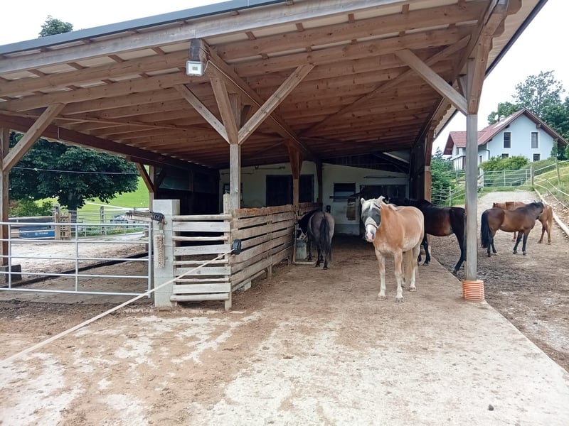 In unserem kleinen, familiären Biobetrieb in der Nähe von Fladnitz / Teichalm – ca. 30 Min. von Weiz, 15 Min. von Passail & Frohnleiten) ist ein Platz im Offenstall frei. Wir suchen: ✔️ Freizeitreiter ✔️ Pensionspferd ✔️ bis max. 1,65 m Stockmaß ✔️ am Besten unbeschlagen & herdenverträglich Wir bieten: 🌾 Offenstall mit Gummimatten & Stroh 🏠 befestigter Auslauf mit Überdachung 🐴 kleine, harmonische Herde 🧹 2× tägliches Ausmisten 🌿 Sommerweiden in Hanglage 🌱 Bio-Heu aus eigener Landwirtschaft (Raufe mit begrenztem Zugang) 💧 Balltränke 🏇 kleiner Reitplatz (Hackschnitzel) 🌲 traumhafte Ausreitwege 🗄️ eigener Kasten
