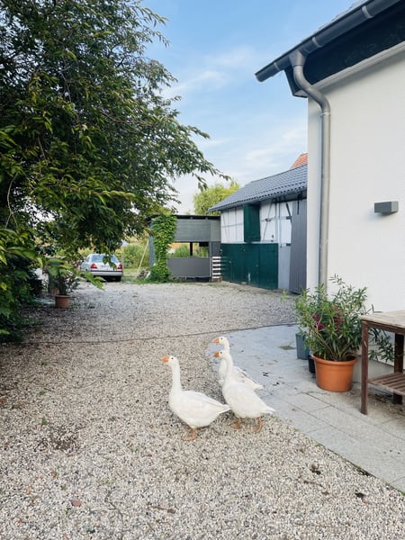 Angeboten wird ein privater, kleiner Offenstall mit großem Unterstand (alternativ 3 Boxen, nach Wunsch umbaubar) und einem drainagierten Paddock. Dazu gehört eine etwa 5.000 m² große Weide, ideal für bis zu 3 Ponys oder 2 Großpferde. Ausstattung: • Sattelkammer und gemütlicher Aufenthaltsraum vorhanden • Hängerstellplatz und Heulager nutzbar • Schönes Ausreitgelände direkt ab Hof • Reitplätze und Reithallen in der Nähe Bedingungen: • Eigenverantwortliche Selbstversorgung oder nach Absprache oder/und Urlaubsvertretung • Mistentsorgung muss selbst organisiert werden • inklusive Strom und Wasser Ein idealer Platz für Ponyhalter, die Wert auf Ruhe, Natur und Eigenständigkeit legen.