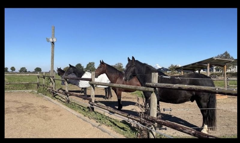 Wir bieten Plätze in einem wunderschönen Offenstall in Vettweiß an. Unser Offenstall bietet Platz für bis zu 8 Pferde. Die Pferde stehen bei uns in einer gemischten Herde zusammen. Der Stall bietet optimale Bedingungen für deine Vierbeiner: • Vollpension mit 24/7 Heu zur Verfügung • Beleuchteter Reitplatz für Training auch abends • Herrliches Ausreitgelände direkt vor der Tür • Weideflächen für freien Auslauf • befestigter Paddock • Fließend Wasser und Stromanschluss vorhanden • beleuchteter Putzplatz • Sattelkammer mit großen Schränken Die Pferde können sich hier frei bewegen und haben ständig Zugang zu frischem Heu. Das Ausreitgelände bietet abwechslungsreiche Strecken für entspannte Ausritte. Die Vollpension beinhaltet 24/7 Heu, Wiesen, Wasser, Strom, 1x täglich sauber machen durch uns. Bei Interesse, meld dich gerne bei uns.