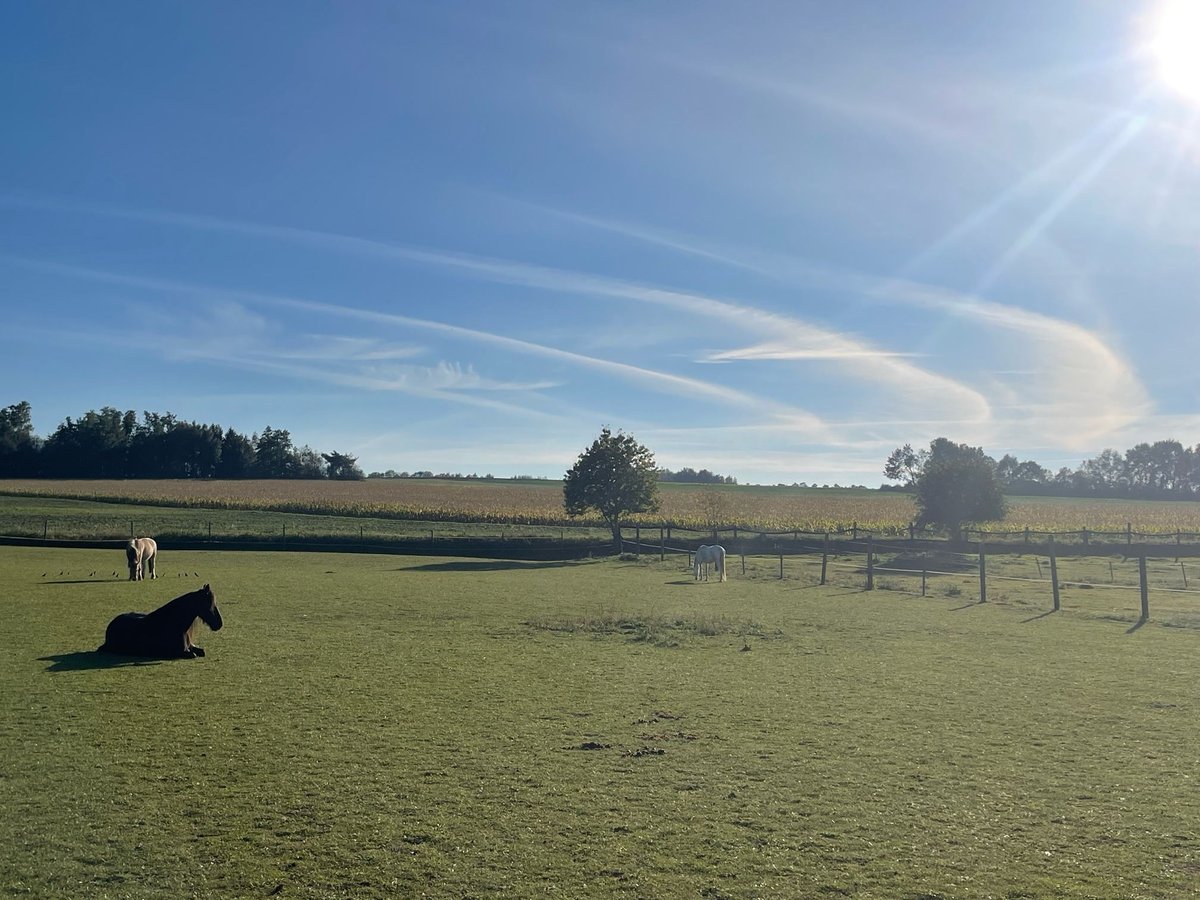 Offenstall mit beh. Tränke, Heu-und Strohraufe, befestigter Paddockbereich, 1 ha Weide, Ganzjahresreitplatz mit Flutlicht, Mistentsorgung incl. Heu und Stroh können abgekauft werden. Kraftfuttergabe kann 2 x tgl. übernommen werden.