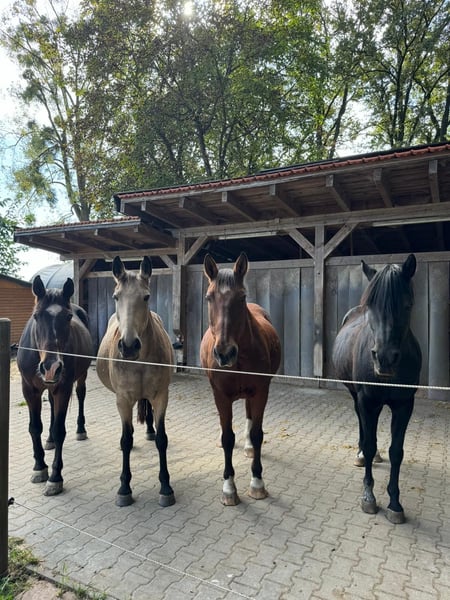 Wir sind eine kleine harmonische und unkomplizierte Herde aus drei Pferden ( zwei Wallache und eine Stute ) und suchen einen neuen Mitbewohner auf vier Hufen, der oder die gut zu uns passen würde. Unser Offenstall basiert auf einer einfachen und klaren Philosophie: Pferde sollen Pferd sein dürfen. Bei uns können sie sich 24 Stunden am Tag frei bewegen, selbst entscheiden, wann sie ruhen fressen oder Kontakt zur Herde suchen - ganz nach ihren natürlichen Bedürfnissen. Gesucht wird idealerweise eine Stute - Wallach ist aber auch möglich - sozialverträglich und offen für das Leben in einer kleinen Herde. Eine flexible Mithilfe beim misten ( etwa zweimal die Woche ) ist Voraussetzung. Der Offenstall liegt in direkter, ruhiger Waldlage, perfekt für Ausritte oder Spaziergänge. Ein kleiner Reitplatz ist vorhanden. Wenn dir also Freiheit, Ruhe und Pferdewohl wichtig sind, melde dich gerne bei uns.