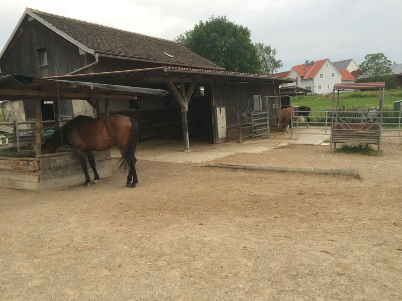 Unser Offenstall liegt inmitten eines traumhaften, waldreichen und unverdorbenen Reitgebiets, in der Nähe von Moorenweis, Landkreis Fürstenfeldbruck, an der Grenze zu den Landkreisen Landsberg und Aichach. 20 Autominuten bis Fürstenfeldbruck, 20 Min. bis Landsberg, 30 Min. bis Augsburg. Unsere Vierbeiner freuen sich über einen großen Paddock mit huffreundlichen Belägen aus Sand, Wandkies und Steinplatten. Aber noch mehr über die sehr weitläufigen 5 ha großen Weideflächen, die wegen ihrer enormen Größe das ganze Jahr über genutzt werden können. Trotz der großen Fläche eine bewußt übersichtliche Herdengröße mit ca. 6 Pferden. Der Zeitaufwand für den Stalldienst (Paddock abmisten und Heu verteilen), den wir unter den Pferdebesitzern aufteilen, ist daher sehr überschaubar. Wir füttern unbehandeltes Futter, das wir von unserer eigenen, seit 35 Jahren nur mit Pferdemist gedüngten Fläche ernten. Über ein weiteres sympathisches Zwei-/Vierbeiner-Team würden wir uns freuen.