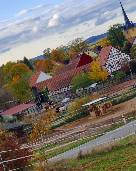 Open stable places or paddock boxes in full board available We currently have paddock boxes and open stable places available (mixed herd)! We are looking forward to welcoming new, friendly people. Children are also very welcome. Pony rides, carriage rides and riding lessons are possible. You are also welcome to bring your own riding instructor. If you have any problems with your horse, there is the possibility of solving them through ground work and confidence training with an experienced riding instructor. Please visit us on our homepage: www.willow-creek-ranch.de We offer: - 24h hay and water - Heated drinking troughs in winter - Fully paved open stables with sand and paddock boxes - grazing from May to October - Direct pasture access to the open stables even during the grazing period - The animal can decide for itself whether it prefers to spend its time in the pasture or the paddock - Slow grazing - Illuminated round pen with 16m diameter - Lighted riding arena 20x40m - partially open, illuminated indoor riding arena with irrigation 20x30m - grounds under video surveillance - Complete facility illuminated - horse solarium - washing area - Shetty keeping possible - own riding instructor possible - beautiful riding area - own tack room - Toilet and washbasin with hot water - Coffee and drinks machine - Oats at your free disposal - 2x daily mucking out - Various additional services can be booked - Digital riding book with booking plans The stable is located in 96274 Itzgrund OT Gleußen. We look forward to seeing you and your 4 legged friends... The team of the Willow Creek Ranch