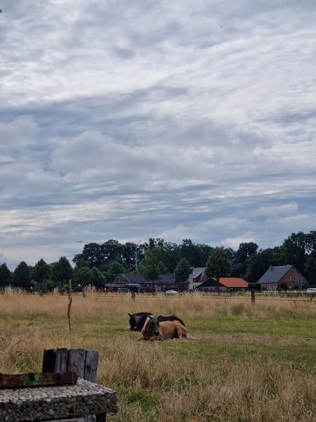 Aufgrund von Bestandsreduzierung haben wir zum 01. November 1 Platz für eine Zuchtstute frei. Die Stuten stehen bei uns am Haus in einer kleinen Herde im Offenstall. Zum Offenstallgehört ein großer Sandpadock, ein 9 x 6 m Laufstall, zwei befestigte und überdachte Unterstände und im Sommer 24/7 Weide. ZurAbfohlzeit stehen große Padockboxen zur Verfügung. Es gibt einen großen Reitplatz (30x60m) und einen Longierzirkel (18m). Der Umkostenbeitrag mit 300€ beinhaltet Vollpension: täglichesMisten, Füttern, Kontrollen, Anweiden, Vorstellen beim Schmied und dem Tierarzt, Zuchtstutenmanagement, Überwachung der Geburt. Also ein Rundum Sorglos Paket! Einstallplätze zur Teilpension oder als Selbstversorger sind nicht möglich.