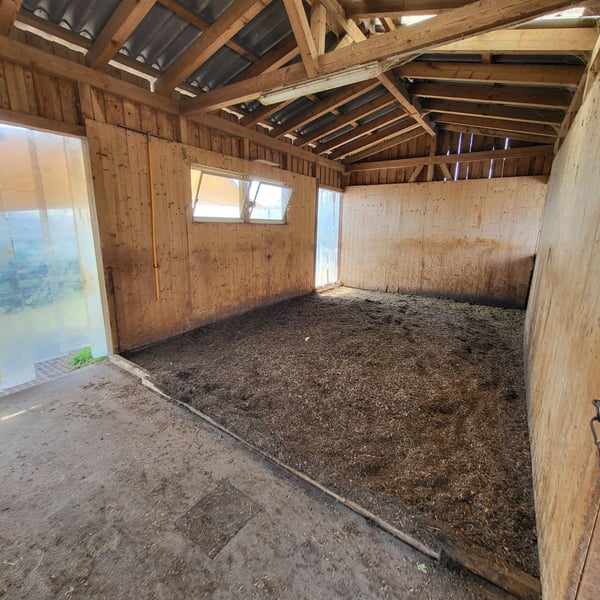 Offenstall mit direktem Zugang auf 1ha Weidefläche, 360 Tage offen. Reitplatz, ganzjährlich nutzbar in der Nähe (knapp 15 min zum warmlaufen). In einem schönen und weitläufigen Reitgebiet mit Galoppstrecken gelegenen Freilaufstall, ist noch Platz für ein Pferd mit ca. Stm. 160cm und Barhuf. Heu aus eigener Produktion vom Netz im Heuraufen, 24/7 zugänglich. Liegebereich mit Waldbodeneinstreu. Zubehör hat Platz im Reiterstübli, WC vorhanden. Bei Mithilfe im Stall kann ein äusserst günstiger Preis von 450.-/Monat angeboten werden. Antworten auf Fragen unter 076 250 1123 erhältlich.