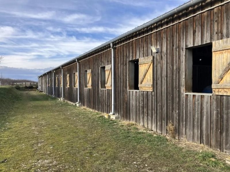 - Einem großen Gebäude mit Holzrahmen, das eine Reithalle mit Pessons-Mikrosandboden (48 x 22 m), eine Boxenhalle mit 20 Boxen und verschiebbaren Wänden, zwei Sattelkammern, Warm- und Kaltwasser-Duschen, einem Büro, einer Futterkammer sowie einem Clubhaus von 96 m² umfasst. Im Obergeschoss befinden sich ein Studio von 80 m² und eine weitere Boxenhalle mit 14 Boxen, Sattelkammer, zwei Warm- und Kaltwasser-Duschen, Büro und Studio.