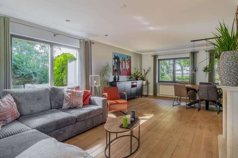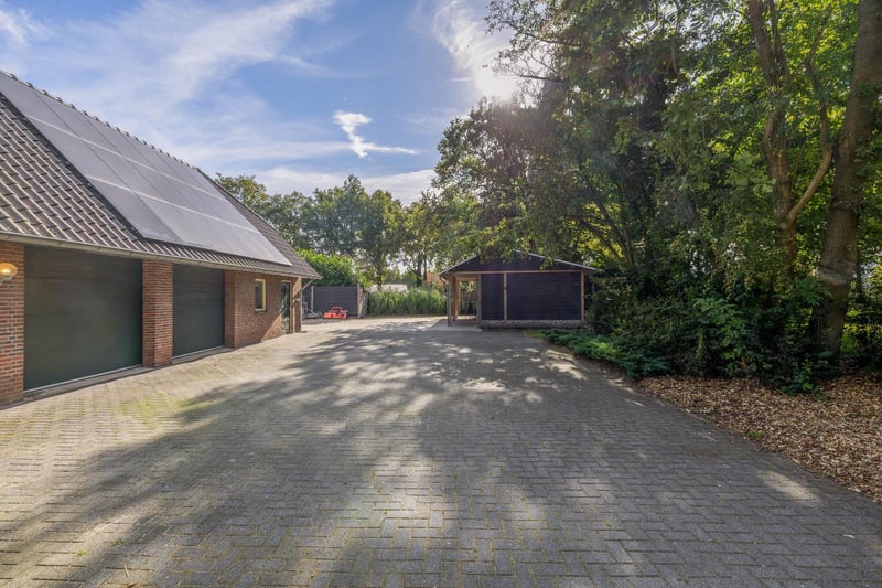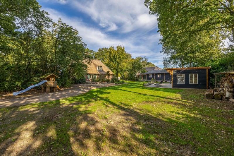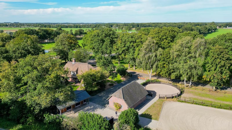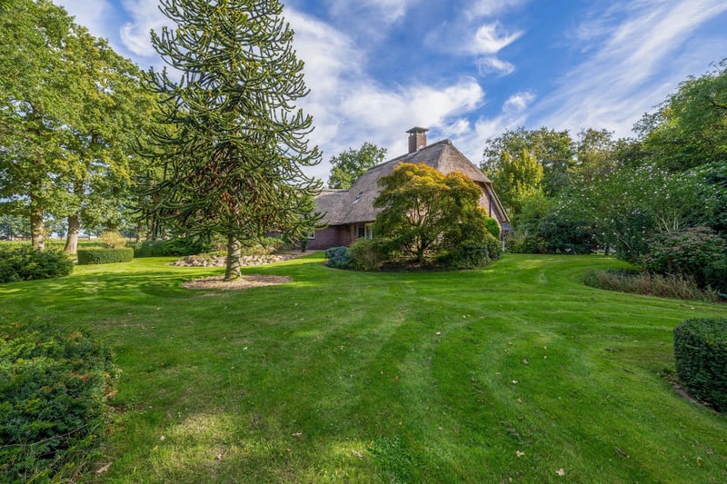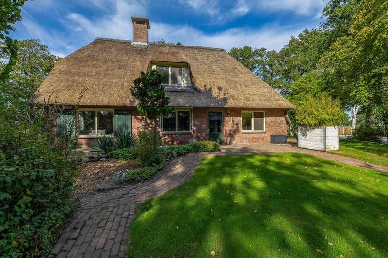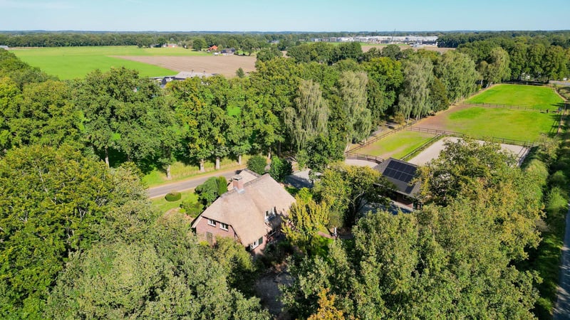 Dieses gepflegte freistehende Haus mit integrierter Garage ist ausgestattet mit zwei Schlafzimmern und einem Badezimmer im Erdgeschoss. Das erste Obergeschoss verfügt über drei weitere Schlafzimmer, ein Badezimmer und einen Abstellraum. Das Anwesen wird ergänzt durch eine separate Doppelgarage. Ein Pferdestall mit zwei Boxen, eine Außenreitbahn, eine Longiercircle und Weideland bieten zahlreiche Möglichkeiten für den Hobby-Pferdehalter! Objekt mit vielfältigen Nutzungsmöglichkeiten! Wunderschönes, mit Schilf gedecktes Landhaus im eleganten Landhausstil, umgeben von einem gepflegten, privaten Garten. Das Haus verfügt über eine innenliegende Garage sowie hinter dem Gebäude eine Doppelgarage mit Abstellraum und Dachboden, die vielseitig nutzbar ist. Zudem gibt es einen kürzlich errichteten Pferdestall mit zwei großzügigen Boxen, einer Wasch- und Spülfläche, einer Reitbahn und einem Longierkreis, beide mit Eb- und Flutboden. Das Anwesen ist auf einem ca. 10.680 m² großen Grundstück äußerst schön gelegen im Außenbereich von Lemelerveld, nur eine kurze Entfernung zu allen Annehmlichkeiten, die dieses lebendige Dorf bietet. Auch die beeindruckende Natur des Sallandse Heuvelrug mit Wäldern und Heidelandschaften sowie der Lemelerberg sind in kurzer Zeit erreichbar. Städte wie Deventer und Zwolle, bekannt für ihre Kultur und Geschichte, sind gut erreichbar, ebenso das nahegelegene touristische Städtchen Ommen. **Wohnhaus** **Erdgeschoss:** Der Eingangsbereich mit Garderobe führt in das Wohnzimmer, die Toilette, die Küche, die beiden Schlafzimmer, das Badezimmer und die innenliegende Garage. Eine schöne Massivholztreppe gewährt Zugang zum ersten Obergeschoss. Das gemütliche Wohnzimmer verfügt über große Fenster, die viel natürliches Licht spenden und einen schönen Blick auf den Garten bieten. Eine Klimaanlage sorgt für angenehme Temperaturen, während ein Gaskamin mit Schornstein für zusätzliche Atmosphäre und Wärme sorgt. Die Landhausküche ist in einer Wandaufstellung gestaltet und mit verschiedenen Einbaugeräten sowie einer Naturstein-Arbeitsplatte ausgestattet. Es gibt ausreichend Platz für einen Essbereich. Die Küche und die Diele sind mit einem Schieferboden versehen. Ein praktischer Hauswirtschaftsraum bietet Anschlüsse für Waschmaschine und Trockner sowie einen Einbauschrank. Eine Tür führt in den Garten. Von der Diele aus ist das Elternschlafzimmer erreichbar, das mit einem praktischen Einbauschrank ausgestattet ist. Angrenzend befindet sich ein komplettes en-suite Badezimmer mit Badewanne, Dusche, Waschbecken und Fußbodenheizung. Neben diesem Schlafzimmer liegt das zweite Schlafzimmer. Die großzügige, innenliegende Garage verfügt über eine Seitentür und ein elektrisch betriebenes Garagentor. Die Garage ist ebenfalls beheizt. **Obergeschoss:** Der Flur bietet Zugang zu drei Schlafzimmern, einem Abstellraum und einem zweiten Badezimmer. Das Badezimmer ist mit Dusche, Wand-WC, Waschbecken und einem Designheizkörper ausgestattet. Der Abstellraum beherbergt die Anlage für die Zentralheizung. **Garten, Hof und Nebengebäude** **Nebengebäude:** Große, freistehende Doppelgarage in traditioneller Bauweise, mit zweischaligem Mauerwerk, Stahlträgern und mit Dachziegeln gedeckt. Die Garage verfügt über einen Betonboden, ein elektrisch betriebenes Tor, Strom, Wasser und Starkstrom. Über der Garage befindet sich ein Dachboden. Das Dach ist mit 18 Solarpanelen ausgestattet. Der Pferdestall ist mit zwei großzügigen Boxen und einer Wasch- und Spülfläche ausgestattet, wobei die Boxen mit Außenklappen versehen sind. **Garten & Hof:** Rund um das Haus erstreckt sich ein schön gestalteter, gepflegter Garten mit Rasenflächen, Beeten und verschiedenen Obstbäumen. **Weitere Einrichtungen:** Der Hof ist außerdem mit einer Außenreitbahn und einem Longierkreis ausgestattet, beide eingezäunt mit Holz. Hinter der Garage befindet sich ein Weideland, ebenfalls mit einem Holzzaun eingezäunt. **Bebauungsplan:** An der Stelle des Hauses, der weiteren Gebäude und des Hofes besteht die Nutzungsart „Wohnen“. Das angrenzende Weideland ist landwirtschaftlich genutzt. **Besonderheiten:** – Baujahr: 1987 – Grundstücksfläche: 10.680 m² – Volumen ca. 854 m³ – Wohnfläche: ca. 208 m² – Außenlagerfläche: ca. 154 m² – Dämmung von Boden und Wänden sowie Doppelverglasung – Fußbodenheizung als Zusatzheizung in Küche, Hauswirtschaftsraum, Flur und Badezimmer im Erdgeschoss – Zwei Schlafzimmer und ein Badezimmer im Erdgeschoss – Energieausweis: Kategorie C – Vorhandenes Videosystem (5 Kameras mit Recorder)