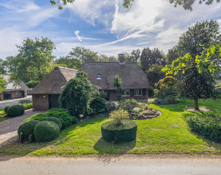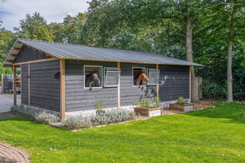 This well-maintained detached house with indoor garage has two bedrooms and a bathroom on the ground floor. The first floor has three more bedrooms, a bathroom and storage space. The property also has a detached double garage. A horse stable with two stalls, an outdoor arena, lunging circle and pasture provide plenty of opportunities for the hobby horse lover! Property with plenty of possibilities! Beautiful thatched house in a lovely rural style surrounded by a beautiful enclosed garden with lots of privacy. The house has an indoor garage, and behind the house there is also a double garage with storage room and attic, which is suitable for multiple uses. There is also a recently built horse stable with two spacious stalls with a grooming/washing area, a riding arena and a lunging circle, both with ebb and flow flooring. The property is beautifully situated on a plot of approximately 10,680 m² and is located in the outskirts of Lemelerveld, a short distance from all the amenities this vibrant village has to offer. The beautiful nature of the Sallandse Heuvelrug with forests and heathland and the Lemelerberg are also a short distance away. Nearby cities such as Deventer and Zwolle, with their rich culture and history, are easily accessible, as is the nearby tourist town of Ommen. RESIDENCE Ground floor: The entrance hall with cloakroom provides access to the living room, toilet, kitchen, two bedrooms, bathroom and indoor garage. A beautiful hardwood staircase provides access to the first floor. The cosy living room has large windows that provide natural light and a beautiful view of the lovely garden. Air conditioning ensures that the room can be heated or cooled. A gas fireplace with mantelpiece adds extra atmosphere and warmth to the room. The country-style kitchen is arranged along one wall and is equipped with various built-in appliances and a natural stone worktop. There is enough space in the room to place a dining area. The kitchen and hall are finished with slate tile flooring. A practical utility room has connections for washing appliances and a practical built-in cupboard. A door provides access to the garden. The master bedroom is accessible from the hall. The master bedroom has a practical built-in wardrobe. Adjacent to this room is a complete en-suite bathroom. This bathroom is equipped with a bath, shower, washbasin and underfloor heating. The second bedroom is located next to this room. The spacious indoor garage has a door and an electrically operated garage door. The garage is also equipped with heating. First floor: The landing provides access to three bedrooms, a storage room, and a second bathroom. The bathroom is equipped with a shower, wall-mounted toilet, washbasin, and a designer radiator. The storage room is equipped with the central heating boiler. GARDEN, YARD AND OUTBUILDINGS Outbuildings Detached spacious double garage. The garage is traditionally built, constructed of cavity walls with steel trusses and the roof is covered with tiles. The garage has a concrete floor and an electrically operated garage door. The garage also has electricity, water and three-phase power. Above the garage is a storage attic. The roof of the garage is equipped with 18 solar panels. The detached horse stable is equipped with two spacious horse boxes and a grooming/washing area. The boxes have external shutters. Garden & yard Surrounding the house is a beautifully landscaped and well-maintained garden with a lawn, borders and various (fruit) trees. Other facilities The yard also features an outdoor arena and a lunging circle. Both are fenced with wood. Behind the garage is a plot of pasture land. The pasture is also enclosed by a wooden fence. Zoning The zoning for the property, outbuildings and yard is “Residential”. The adjacent pasture land has an agricultural zoning. Details: – Year of construction: 1987 – Plot size: 10,680 m² – Volume approx. 854 m³ – Living area: approx. 208 m² – External storage space: approx. 154 m² – Floor and wall insulation and double glazing. – Underfloor heating as additional heating in the kitchen, utility room, hall and bathroom on the ground floor. – Two bedrooms and bathroom on the ground floor – Energy label C – There is a camera system (5 cameras equipped with a recorder) Status Available Features State Overijssel Amount of horse boxes 2 Indoor arena No Outdoor arena Yes Horse walker No Lunge pen Yes