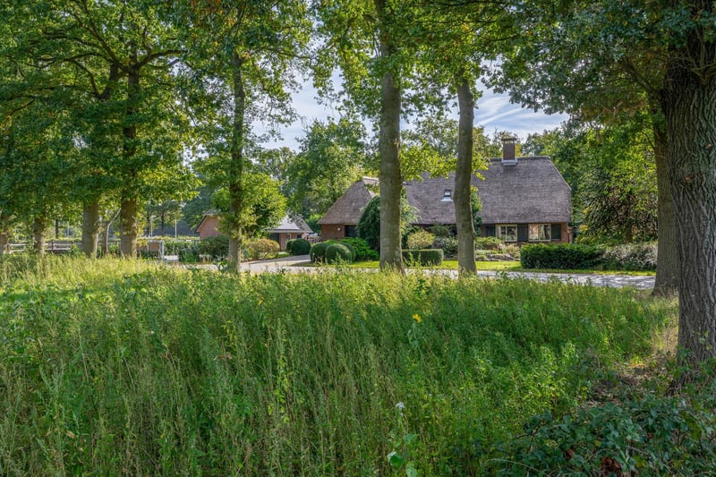 Deze goed onderhouden vrijstaande woning met inpandige garage is ingericht met twee slaapkamers en een badkamer op de begane grond. De eerste verdieping is ingericht met nog eens drie slaapkamers, een badkamer en berging. Het geheel is verder nog uitgerust met een vrijstaande dubbele garage. Een paardenstal met 2 boxen, een buitenpiste, longeercirkel en weiland zorgen voor volop mogelijkheden voor de hobbymatige paardenliefhebber! Object met volop mogelijkheden! Prachtig rietgedekt woonhuis in fraaie landelijke stijl omgeven door een mooie besloten tuin met veel privacy. Het huis beschikt over een inpandige garage, tevens bevindt zich achter de woning nog een dubbele garage met berging en zolder, welke voor meerdere gebruiksdoeleinden geschikt is. Verder is er een recent gerealiseerde paardenstal met 2 royale boxen met een poets/spuitplaats, een rijbak en een longeercirkel, beiden met eb- en vloedbodem aanwezig. Het geheel is bijzonder mooi gesitueerd op een perceel van ca. 10.680 m² en is gelegen in het buitengebied van Lemelerveld, op korte afstand van alle voorzieningen die dit bruisende dorp te bieden heeft. Ook de prachtige natuur van de Sallandse Heuvelrug met bossen en heide en de Lemelerberg liggen op korte afstand. Nabij gelegen steden als Deventer en Zwolle met veel cultuur en historie zijn goed te bereiken evenals het vlakbij gelegen toeristische stadje Ommen. WOONHUIS Begane grond: De entreehal met garderobe biedt toegang tot de woonkamer, toiletruimte, keuken, de 2 slaapkamers, badkamer en de inpandige garage. Een fraaie hardhouten trap zorgt voor toegang tot de 1e verdieping. De sfeervolle woonkamer beschikt over grote raampartijen welke zorgen voor natuurlijke lichtinval en een fraai zicht op de prachtige tuin. Een airco zorgt ervoor dat de ruimte verwarmd of gekoeld kan worden. Een gashaard met schouw zorgt voor extra sfeer en warmte in de ruimte. De landelijke keukeninrichting is in een wandopstelling geplaatst en is voorzien van diverse inbouwapparatuur en een natuurstenen werkblad. In de ruimte is voldoende plek om een eethoek te plaatsen. De keuken en de hal zijn afgewerkt met een leistenen tegelvloer. Een praktische bijkeuken beschikt over de aansluitingen voor de wasapparatuur en een praktische vaste kast. Een loopdeur zorgt voor toegang tot de tuin. Vanuit de hal is de ouderslaapkamer bereikbaar. De ouderslaapkamer is voorzien van een praktische vaste kastenwand. Aangrenzend aan deze kamer is een complete badkamer en-suite gesitueerd. Deze badkamer is ingericht met een ligbad, douche, wastafel en er is vloerverwarming aanwezig. Naast deze kamer is de tweede slaapkamer gelegen. De ruime inpandige garage beschikt over een loopdeur en een elektrisch bedienbare garagedeur. De garage is tevens uitgerust met verwarming. 1e verdieping: De overloop biedt toegang tot drie slaapkamers, een berging, en een 2e badkamer. De badkamer is ingericht met een douche, wandcloset, wastafel en een designradiator. De berging is uitgerust met de opstelling voor de cv-ketel. TUIN, ERF EN BIJGEBOUWEN Bijgebouwen Vrijstaande royale dubbele garage. De garage is traditioneel gebouwd, opgetrokken uit spouwmuren met stalen spanten en het dak is met pannen gedekt. De garage is voorzien van een betonnen vloer en een elektrisch bedienbare garagedeur. Tevens is er in de garage elektra, water en krachtstroom aanwezig. Boven de garage is een bergzolder gesitueerd. Het dak van de garage is voorzien van 18 zonnepanelen. De vrijstaande paardenstal is uitgerust met twee royale paardenboxen en een poets/spuitplaats. De boxen beschikken over buitenluiken. Tuin & erf Rondom de woning is een fraai aangelegde en verzorgde tuin gelegen welke is ingericht met gazon, borders en diverse (fruit)bomen. Overige faciliteiten Het erf is verder ingericht met een buitenpiste en een longeercirkel. Beide zijn omheind met hout. Achter de garage is een perceel weiland gelegen. Het weiland is eveneens voorzien van een houten omheining. Bestemming Ter plaatse van de woning verdere opstallen en erf is de bestemming ‘Wonen’. Het aangrenzende weiland heeft een agrarische bestemming. Bijzonderheden: – Bouwjaar: 1987 – Oppervlakte perceel: 10.680 m² – Inhoud ca. 854 m³ – Woonoppervlakte: ca. 208 m² – Externe bergruimte: ca. 154 m² – Toepassing van vloer- en muurisolatie en dubbele beglazing. – Vloerverwarming als bijverwarming in de keuken, bijkeuken, hal en badkamer op de begane grond. – Twee slaapkamers en badkamer op de begane grond – Energielabel C – Er is een camerasysteem aanwezig (5 camera’s welke zijn voorzien van een recorder).