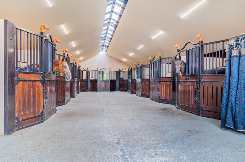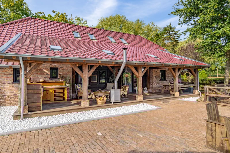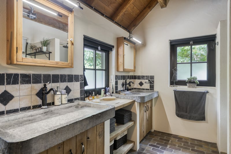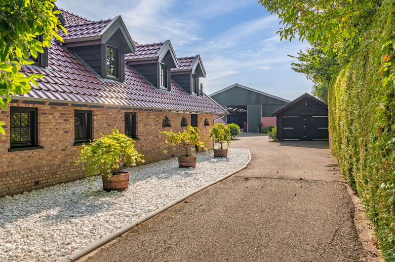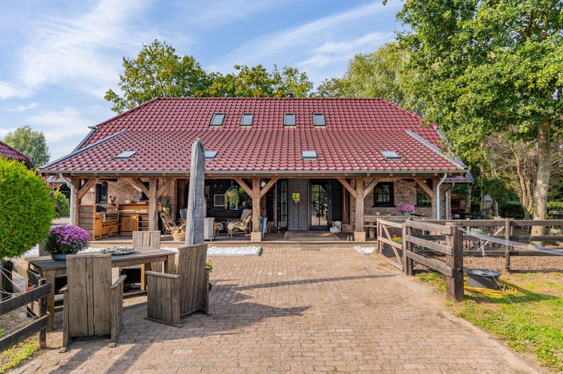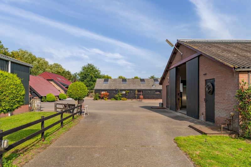 Are you interested in this stunning property? Contact Stroomberg Makelaardij at 0318 49 29 16 or info@stroombergmakelaardij.nl. Imagine living in a place where you have ample space around you, surrounded by beautiful tree belts and with unobstructed views over the meadows, while your horses graze peacefully in the adjacent pastures. Here, you experience outdoor living in its most complete form. This is not just a house but a fully equipped estate for horse lovers, outdoor enthusiasts, and anyone seeking space to live, work, and enjoy. With a plot of over 2.1 hectares, a spacious indoor and outdoor riding arena, luxury stables, pastures directly behind the property, and a stylish outbuilding that can be customized as a guesthouse, office, or caretaker’s residence, this property offers everything you could wish for. The beautiful country house was built in 2018 with a love for rural life and attention to detail, featuring a unique interior where natural materials and large living spaces take center stage. Location Nestled between expansive meadows and tree belts, you will find Zelderseweg 23 in Zwartebroek. Here, you can enjoy the tranquility and space of outdoor living, while villages like Terschuur, Barneveld, and Hoevelaken are within short driving distance. For nature and recreation enthusiasts, this is a wonderful place: walk or cycle along the Terbroeksepad, discover the fields where cuckoo flowers bloom in spring, or simply enjoy the sweeping views from your own plot. The location is also practical, with the A1 and A30 motorways nearby, providing excellent access to Amersfoort, Utrecht, and Apeldoorn. Layout Ground Floor Whether you enter via the back door or under the cozy canopy on the side, you immediately feel it: this is a characterful home. The interior exudes rural charm, with plenty of oak wood, natural materials, and a warm, inviting atmosphere that is rarely seen. The exclusive country house was built in 2018 with attention to detail and a love for outdoor living. All rooms are interconnected, and the open mezzanine creates a sense of space that extends to the roof ridge. The living area forms one large, open space with different zones flowing into each other. At the rear, there is a cozy sitting area. In the heart of the room, a generous seating area surrounds an impressive, free-standing wood stove; here, it truly feels like the warm center of the house. Underfloor heating provides a pleasant base warmth. There is also a charming corner with a workspace, offering a perfect combination of relaxation and practicality. On the front garden side, you will find the country-style kitchen, fully equipped with ample work and storage space and various built-in appliances. From here, you have views of the beautiful greenery and direct access to the terrace, making outdoor dining easy on nice days. Adjacent to the kitchen is the dining area, where cooking and dining seamlessly blend. On the ground floor, there is also a utility room with a worktop and laundry appliances, with direct access to outside. Next to the kitchen is the stylish bathroom, where the country style is carried through in every detail. Here, you can enjoy the comfort of a spacious walk-in shower, a freestanding bathtub for relaxing evenings, a large vanity unit, and a second toilet. A delightful space where starting and ending each day feels like a treat. First Floor The wooden staircase leads to the upper floor, where the rural atmosphere continues. Everything here is finished in oak wood. You will find two generously sized bedrooms, each with a charming appearance. On the side, there is an open area with views of the living room below, now tastefully decorated with furniture for decoration. If desired, this space can be enclosed to create additional bedrooms or even a bathroom. Exterior On the 21,080 m² plot, a unique interplay of nature, space, and luxurious facilities unfolds. It is a dream location for horse lovers and outdoor enthusiasts, with beautiful tree belts and stunning views over the meadows where your horses can graze peacefully. Several cozy sitting areas invite you to enjoy outdoor living to the fullest, such as the spacious canopy where you can stay until late hours. All horse facilities are present: a large indoor riding arena (40 x 20 m) and an outdoor arena built according to the Agterberg principle, 11 luxury horse stables including tack room, solarium/wash station, and storage, as well as multiple paddocks with fencing, electricity, and water. Additionally, the estate offers ample practical space and options: a large barn with a shed for (hay) storage, workshop, and garage; a spacious garage near the house; and a versatile outbuilding that can be adapted as a guesthouse, office, or additional accommodation. For horse owners, there are paddocks, a manure area, and parking space for trucks or trailers. All together, this is a versatile, complete, and stylish rural domain where living, working, and keeping horses come together seamlessly. Features / Highlights / Facilities • Year of construction: The country house was completed in 2018. • Construction: Traditional build, made of brick with cavity walls. Roof covered with tiles. • Insulation: The house and outbuilding are fully insulated. • Heating: Intergas HR central heating system, underfloor heating throughout the ground floor, two pellet stoves, and a cozy wood stove in the living room. • Groundwater source • Standard utility connections including three-phase power. • Zoning plan: Single-purpose agricultural horse farm. • Outdoor arena (approx. 20 x 40 m), built according to the Agterberg principle, with wooden fencing and irrigation system. • Indoor arena (approx. 20 x 40 m), built according to the Agterberg principle, equipped with knee walls, mirrors, lighting, and irrigation. • Private groundwater pump in the indoor arena. • Several pastures on the rear terrain with fencing, electricity, and water troughs. • P