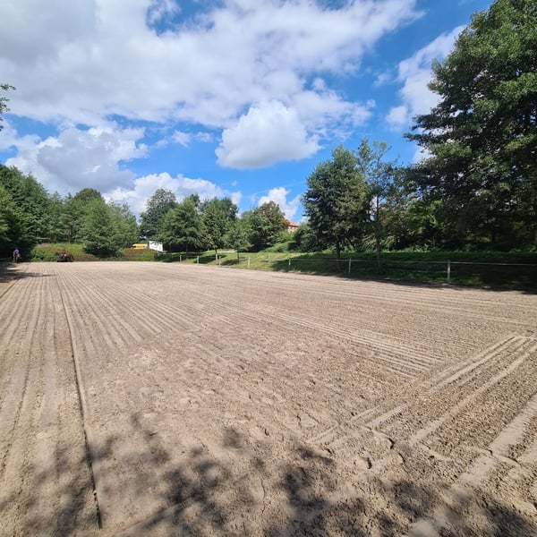 Por razones de edad, deseo vender mi bien establecida instalación ecuestre situada a 20 minutos al este de la frontera de la ciudad de Dresde; dado que he combinado la propiedad real con el edificio de la pista de equitación / el campo de salto de hierba / la pista de doma / el estanque para caballos, por razones organizativas, la venta se realizará en forma de participaciones en la copropiedad del terreno total de más de 5ha, junto con la propiedad exclusiva del edificio de la pista de equitación, incluyendo un gran apartamento para el operador con oficina (185m²) y un pequeño apartamento para el cuidador de caballos (45m²), 3.000m² de campo de salto de hierba con obstáculos naturales y la pista de doma de 68x25m. Existe la posibilidad de adquirir la propiedad exclusiva del edificio de la pista de equitación + el campo de salto + la pista de doma por 2 millones de euros o participaciones a partir del 10% por 200.000€. Además, hay la opción de adquirir aproximadamente 20ha de tierras de pasto + bosque con un establo para caballos de 400m², por ejemplo, para cría separada o mantenimiento de potros. Precio de compra 500.000€. En el borde del pueblo de 01909 Bühlau, un pueblo con 600 habitantes. Muy ambiente rural con grandes praderas, campos circundantes, 150ha de bosque a 2km de distancia con muchos caminos para montar a caballo.
