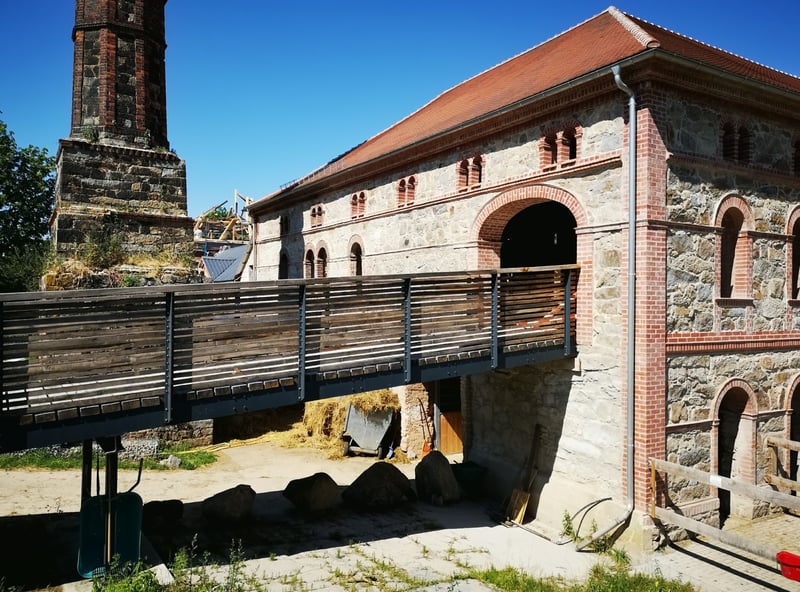 Vanwege mijn leeftijd wil ik mijn goed gevestigde rijstal verkopen, gelegen op 20 minuten ten oosten van de stadsgrens van Dresden. Aangezien ik het eigenlijke perceel met de rijhal, springweide, dressuurplaats, paardenpoel, enz. om organisatorische redenen heb samengevoegd met het perceel van de aangrenzende historische vierzijdige boerderij, vindt de verkoop plaats van mede-eigendomsrechten op het totale perceel van meer dan 5ha, in combinatie met het bijzondere eigendom van de rijhal inclusief de grote bedrijfswoning met kantoor (185m²) en een klein appartement voor paardenverzorgers (45m²), 3.000m² springweide met natuurlijke hindernissen en de zand dressuurplaats van 68x25m. Er is de mogelijkheid om ofwel het volledige bijzondere eigendom van de rijhal + springweide + dressuurplaats te kopen voor 2 miljoen euro, of aandelen vanaf 10% voor 200.000 euro. Bovendien is er de mogelijkheid om ongeveer 20ha grasland + bos met een bestaande paardenstal van 400m² extra aan te kopen, bijvoorbeeld voor aparte fok of jongpaardenhouderij. Aankoopprijs 500.000 euro. Rand van 01909 Bühlau, een dorp met 600 inwoners. Zeer landelijke sfeer met grote weides, omliggende velden, 150ha bos op 2 km afstand met veel ruiterpaden.