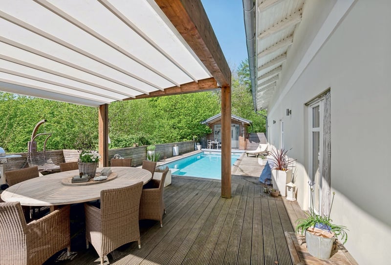 In idyllischer Alleinlage im Kreis Plön präsentiert sich dieses elegante Privatanwesen für Pferdefreunde. Das Anwesen liegt ruhig und geschützt, eingebettet in Wiesen, Weiden und Waldflächen, und bietet sowohl großzügige Privatsphäre als auch optimale Bedingungen für Tierhaltung und Freizeitgestaltung. Mit einem Grundstück von über 21.500 m² eröffnet sich ein Lebensraum, der Naturverbundenheit, Komfort und Eleganz auf einzigartige Weise verbindet. Das Wohnhaus beeindruckt mit ca. 192 m² Wohnfläche und einer Ausbaureserve von weiteren 45 m² im Obergeschoss. Eine Baugenehmigung für eine Einliegerwohnung im OG liegt bereits vor. Im Erdgeschoss erwarten Sie ein großzügiges Wohnzimmer mit 40 m², eine elegante Landküche, zwei Büroräume, ein Hauptschlafzimmer sowie ein stilvolles Badezimmer mit Rundbadewanne. Die Raumgestaltung vereint zeitlose Eleganz mit funktionaler Praxis für modernes Wohnen. Für Freizeit und Wellness sorgt ein Salzwasserpool mit Terrasse und überdachtem Grillplatz sowie ein Saunahaus mit Dusche und Ruheraum – perfekte Orte zur Entspannung nach einem langen Tag. Pferdehalter finden hier hervorragende Bedingungen vor: Ein Stallgebäude mit 240 m², Sattelkammer, Futterlager, Solebox für Inhalationen, ein Offenstall für bis zu 8 Pferde, Winterpaddock, ca. 1.100 m² Paddock/Reitplatz sowie weitläufige Weideflächen bieten ideale Voraussetzungen für eine artgerechte Haltung. Eine separate Werkhalle von 480 m² rundet das Anwesen funktional ab. Ein naturnaher Biotopteich und umliegende Waldflächen schaffen eine harmonische, naturnahe Umgebung. Dieses Anwesen verbindet ländliche Ruhe, exklusive Wohnqualität und professionelle Pferdehaltung und richtet sich an Menschen, die Natur, Eleganz und großzügige Freiflächen schätzen. ________________________________________ Daten & Fakten auf einen Blick: •Lage: Schleswig-Holstein, Kreis Plön, 24321 Giekau •Grundstück: ca. 21.556 m² in ruhiger Alleinlage •Wohnfläche: ca. 192 m² + 45 m² Ausbaureserve (Baugenehmigung für Einliegerwohnung im OG vorhanden) Raumaufteilung: oWohnzimmer: 40 m² oGroße elegante Landküche o2 Büroräume oHauptschlafzimmer oBadezimmer mit Rundbadewanne Wellness & Freizeit: oSalzwasserpool mit Terrasse und überdachtem Grillplatz oSaunahaus mit Dusche und Ruheraum Pferdehaltung & Außenanlagen: oStallgebäude 240 m² oSattelkammer, Futterlager oSolebox für Inhalation oOffenstall für bis zu 8 Pferde oWinterpaddock oPaddock/Reitplatz ca. 1.100 m² oWeideflächen, Waldfläche Sonstiges: oWerkhalle 480 m² oBiotopteich ----------------------------------------- Sonstige Hinweise: Dieses Objekt bieten wir in Kooperation mit einem unserer Netzwerk-Makler an. Mit Ihrer Kontaktanfrage akzeptieren Sie, dass Sie sich für dieses Objekt interessieren und ein Expose von unserem Netzwerk-Makler anfragen. Ebenso bestätigen Sie die Provisionsvereinbarungen zwischen unserem Netzwerk-Makler und Ihnen, die im Falle eines notariell bestätigten Kaufvertrages rechtskräftig werden. Ebenso bestätigen Sie, dass wir berechtigt sind, Ihre Kontaktdaten an den Netzwerk-Makler weiterzuleiten. ............................. Lage: Das Anwesen liegt in Schleswig-Holstein, im Kreis Plön, in der Gemeinde Giekau, in ruhiger und naturnaher Alleinlage. Umgeben von Wiesen, Weiden und Waldflächen bietet die Lage absolute Ruhe und Privatsphäre, ideal für Pferdehalter, Naturfreunde und Menschen, die sich ein großzügiges Lebensumfeld wünschen. Die unmittelbare Umgebung ist geprägt von ländlicher Idylle, klaren Sichtachsen und einem harmonischen Zusammenspiel von Natur und gepflegten Außenanlagen. Trotz der abgeschiedenen Lage ist eine sehr gute Anbindung an die umliegenden Städte und Infrastruktur gegeben. Die Kreisstadt Plön sowie größere Städte wie Lübeck und Kiel sind in angemessener Fahrzeit erreichbar. Über die nahegelegenen Landstraßen besteht eine schnelle Verbindung zu Autobahnen, die eine zügige Anbindung an Hamburg, Lübeck oder die Ostseeküste ermöglichen. Einkaufsmöglichkeiten, Ärzte, Schulen und Kindergärten befinden sich in Giekau selbst oder in den benachbarten Orten und sind innerhalb weniger Minuten erreichbar. Diese Lage vereint ländliche Ruhe, naturnahe Umgebung und exklusive Privatsphäre mit praktikabler Erreichbarkeit – ideal für Familien, Pferdehalter, Selbstständige oder Pendler, die ein außergewöhnliches Anwesen in Schleswig-Holstein suchen.