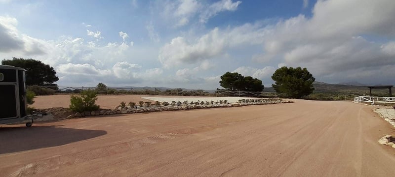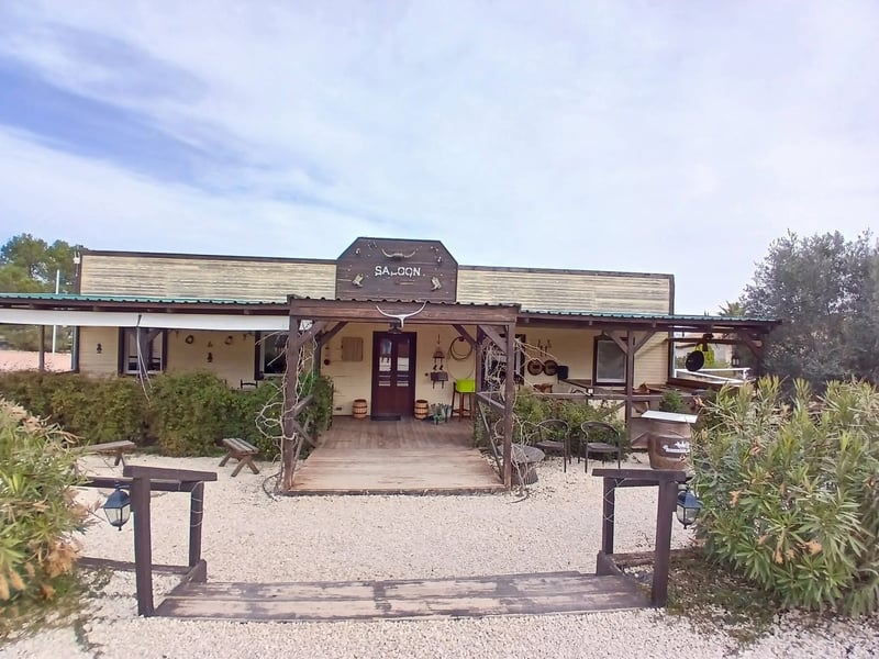 Rancho Western con (turismo) y REGA para 17 caballos en Monovar 831 m² 🏡 37.000 m² de terreno Una oportunidad de negocio o simplemente un sueño hecho realidad. Este rancho fue construido con amor y materiales de alta calidad. Área privada: Hay una gran villa de 165 m² de superficie habitable y cuatro dormitorios, uno de ellos como oficina. El dormitorio principal cuenta con baño en suite y aire acondicionado. La villa ofrece dos baños adicionales para huéspedes, una lavandería, una gran cocina independiente con comedor y una acogedora sala de estar con estufa de pellets. La casa dispone de calefacción central de aceite y ventanas de madera con doble acristalamiento, oscilobatientes, persianas y mosquiteras. Además, hay una gran piscina privada con área de descanso y bar en la piscina. Área turística: El área turística cuenta con cuatro bungalows, cada uno con una cama doble, un baño, calentadores de gas independientes para agua caliente y aire acondicionado. Cada bungalow tiene una pequeña terraza con vistas a la piscina de madera. También hay un salón de aproximadamente 150 m² con bar y terraza exterior cubierta. Instalaciones ecuestres: Hay una generosa pista de equitación (20 x 40 m), establos (8 boxes de 4 x 3 m), paddocks y una pista de trail. Establo abierto con grandes áreas para el ejercicio. Además, hay un gran cuarto de sillas aislado, un taller y un almacén de heno. Hay un establo ampliable para 17 caballos. También hay 2 baños exteriores. La propiedad cuenta con agua de riego, dos depósitos de agua (20.000 + 10.000 litros), electricidad de red y un sistema solar de 20 kWh con baterías de 10 kW, que tiene menos de dos años. También hay dos fosas sépticas. Adicionalmente, hay un gran aparcamiento, un jardín de hierbas y un área para juegos al aire libre como tiro con arco y cornhole. Venta privada 1.199.990 € Consultas exclusivamente por WhatsApp +34 622 509 702